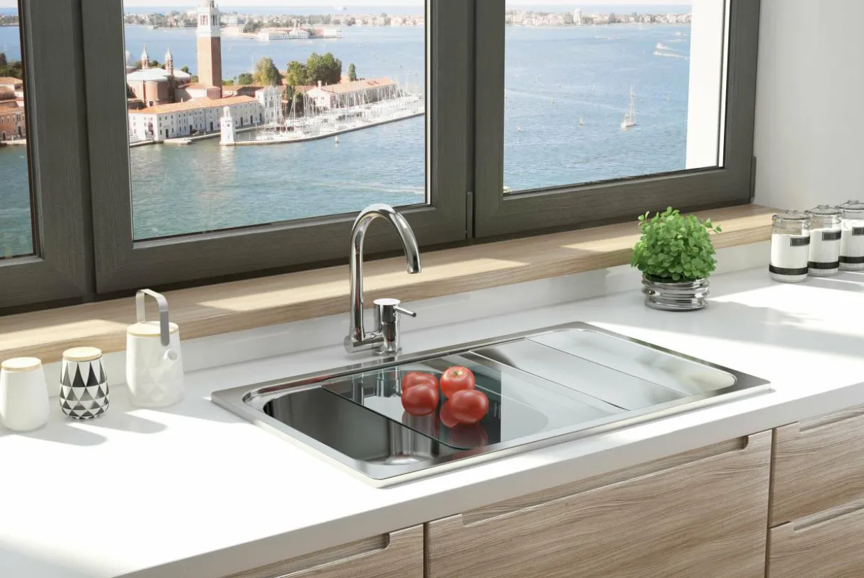 Wykonana ze stali szlachetnej posiada eleganckie chromowane wykończenie, które można z powodzeniem zestawić z jasną kolorystyką kuchni.