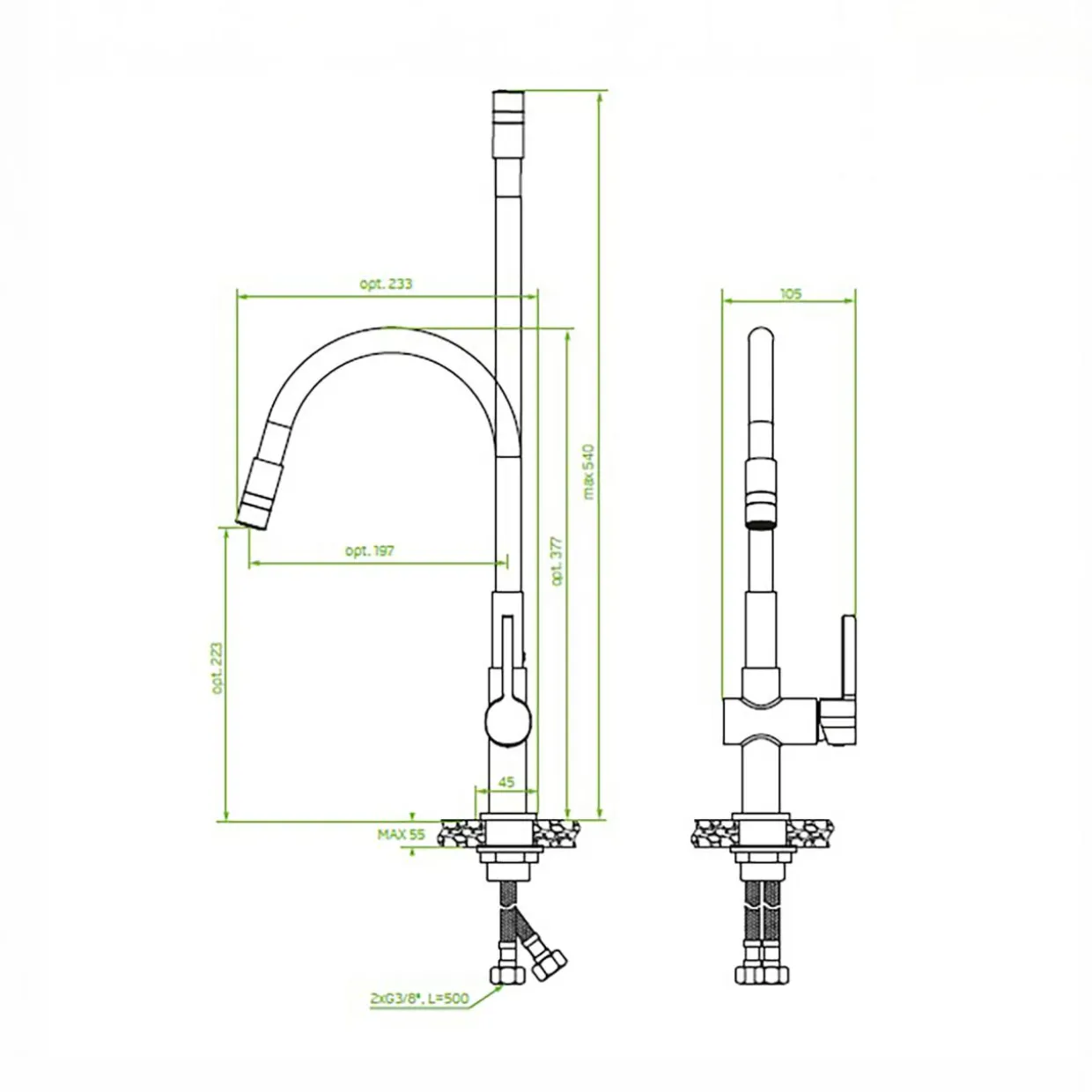 - Elastyczna wylewka – umożliwia swobodne kierowanie strumienia wody, ułatwiając mycie naczyń, opłukiwanie warzyw czy napełnianie dużych garnków.