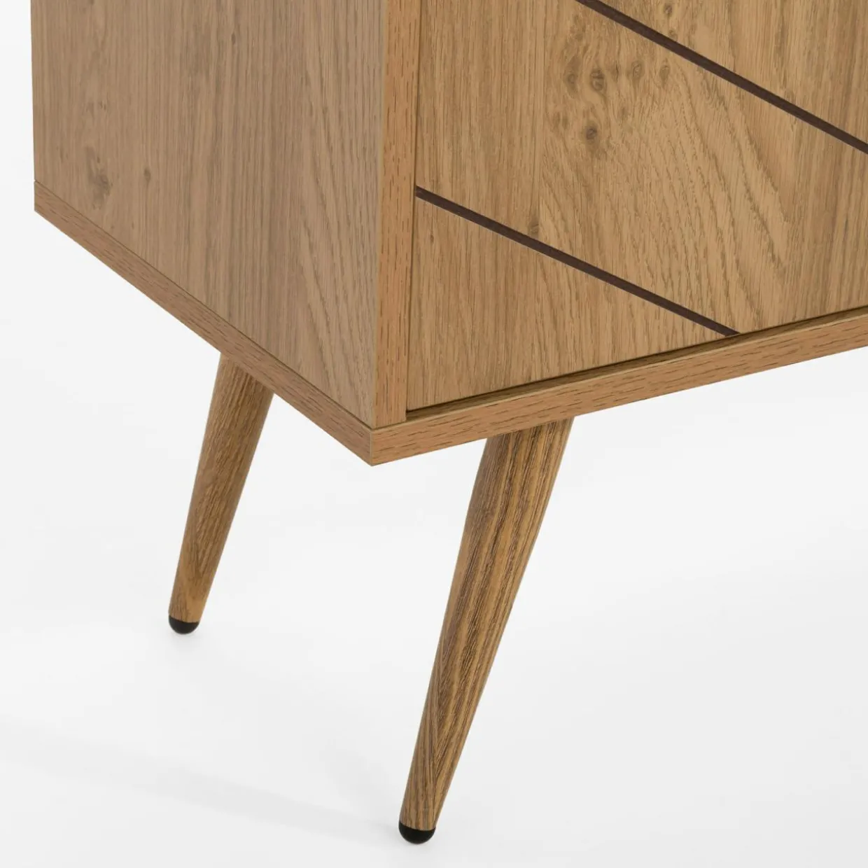 - Uchwyty i nogi w barwach podobnych do mebli dodatkowo podkreślają ciepły kolor wykończenia.