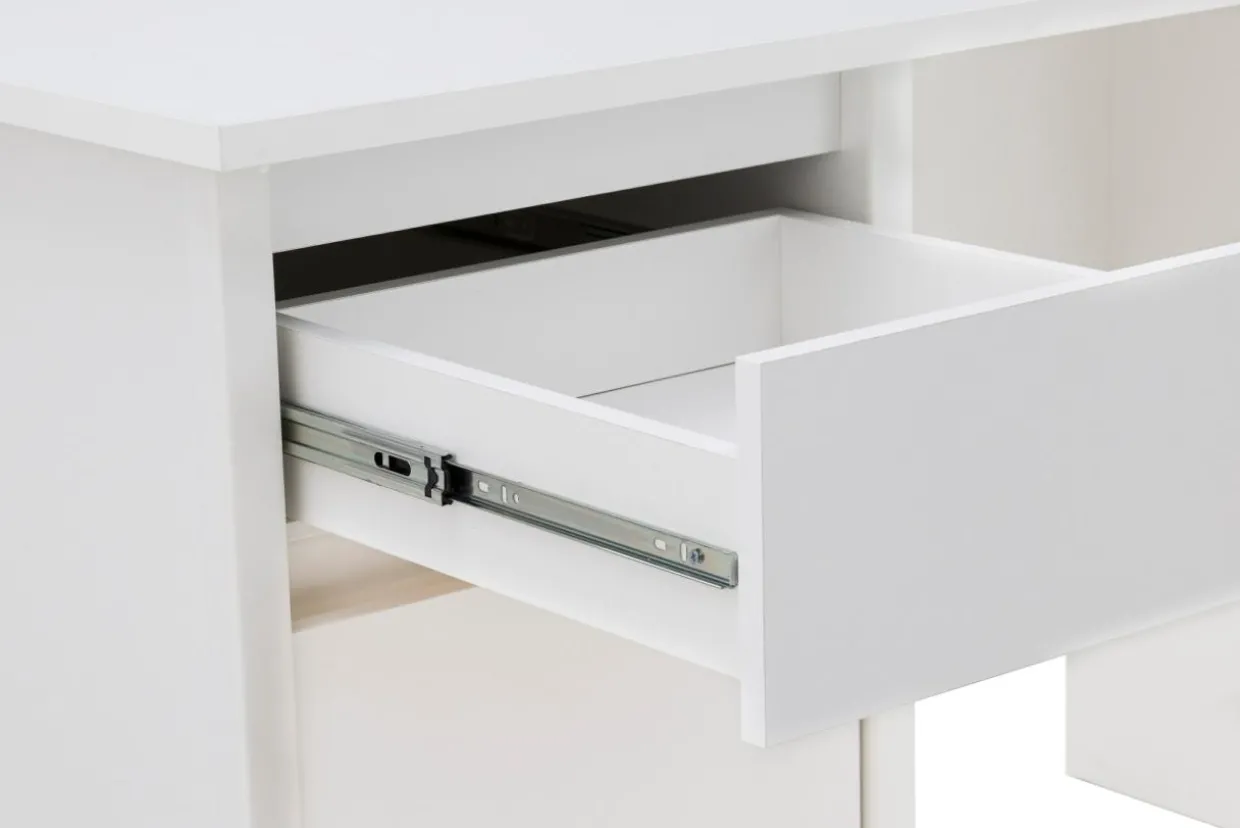Biurko ERDEN posiada pojemne wnętrze, wyposażone w pojedynczą szufladę oraz umieszczoną poniżej zamykaną szafkę.