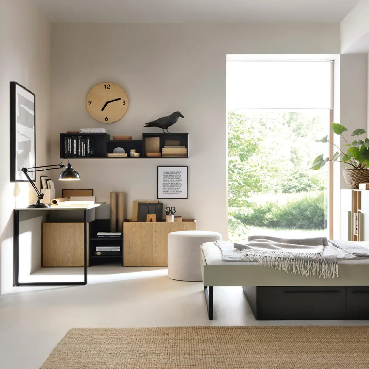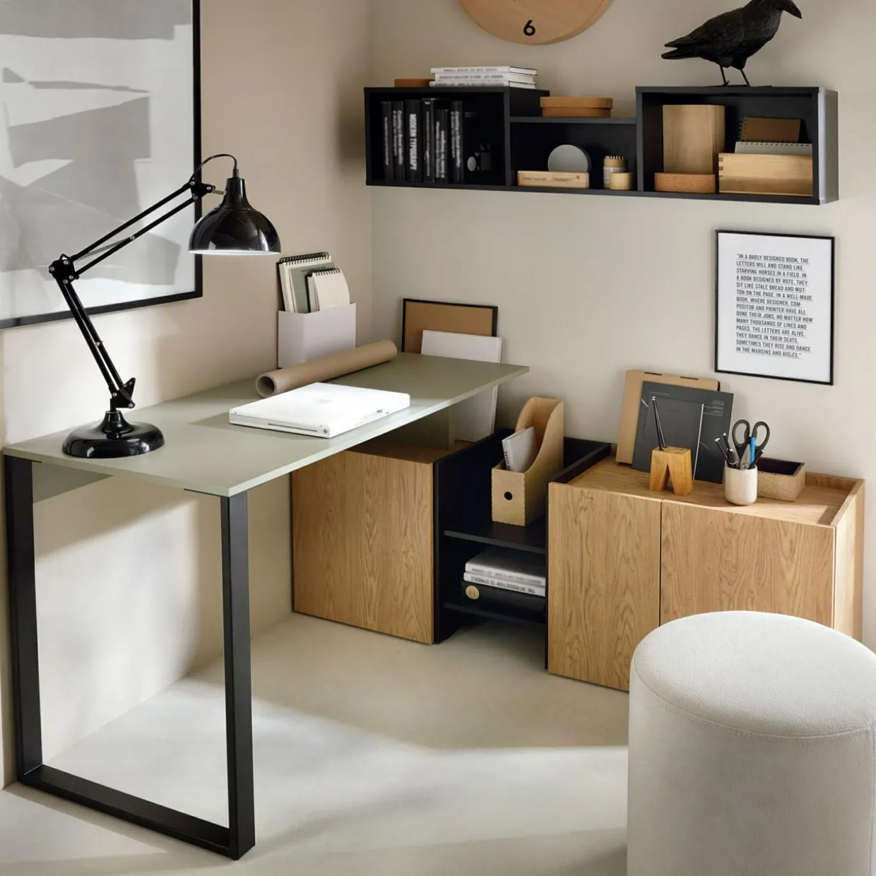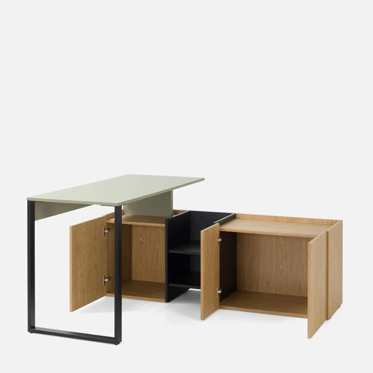 Biurko SERGIO ustawisz tak, jak Ci wygodniej – na całą długość ściany, w rogu pomieszczenia lub z blatem odsuniętym od ścian.