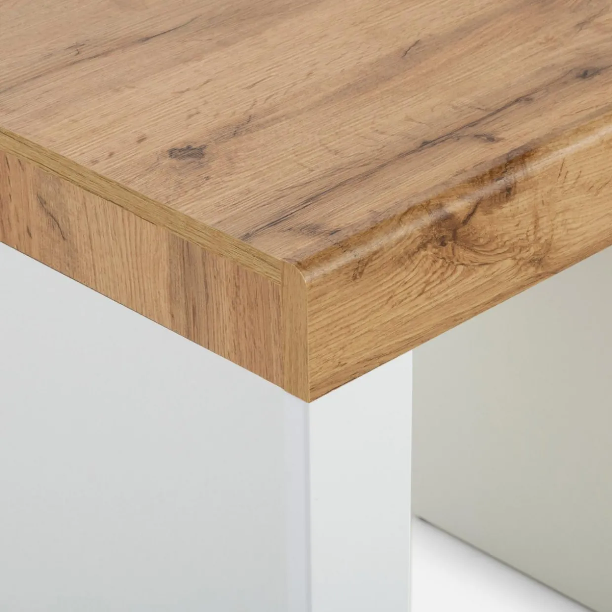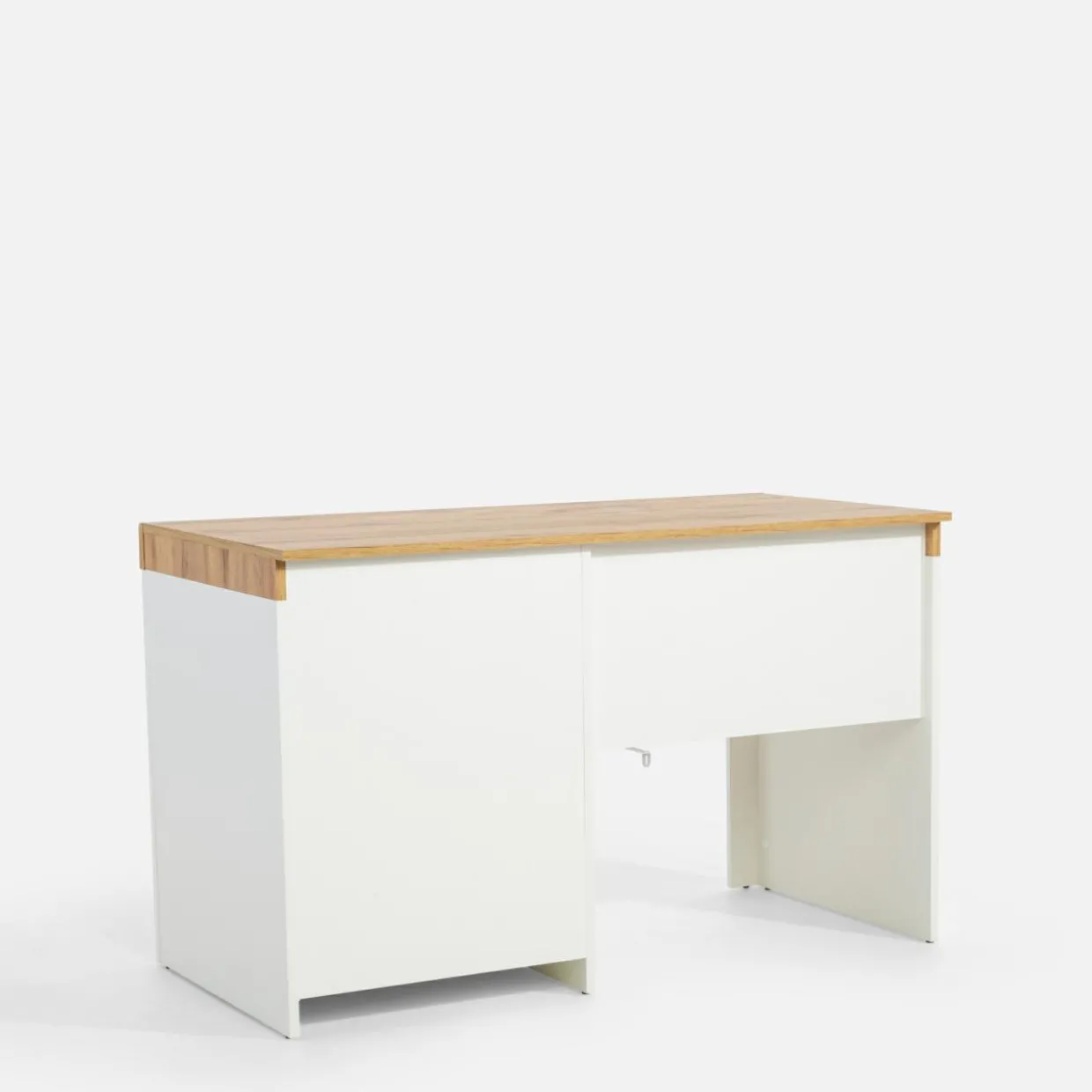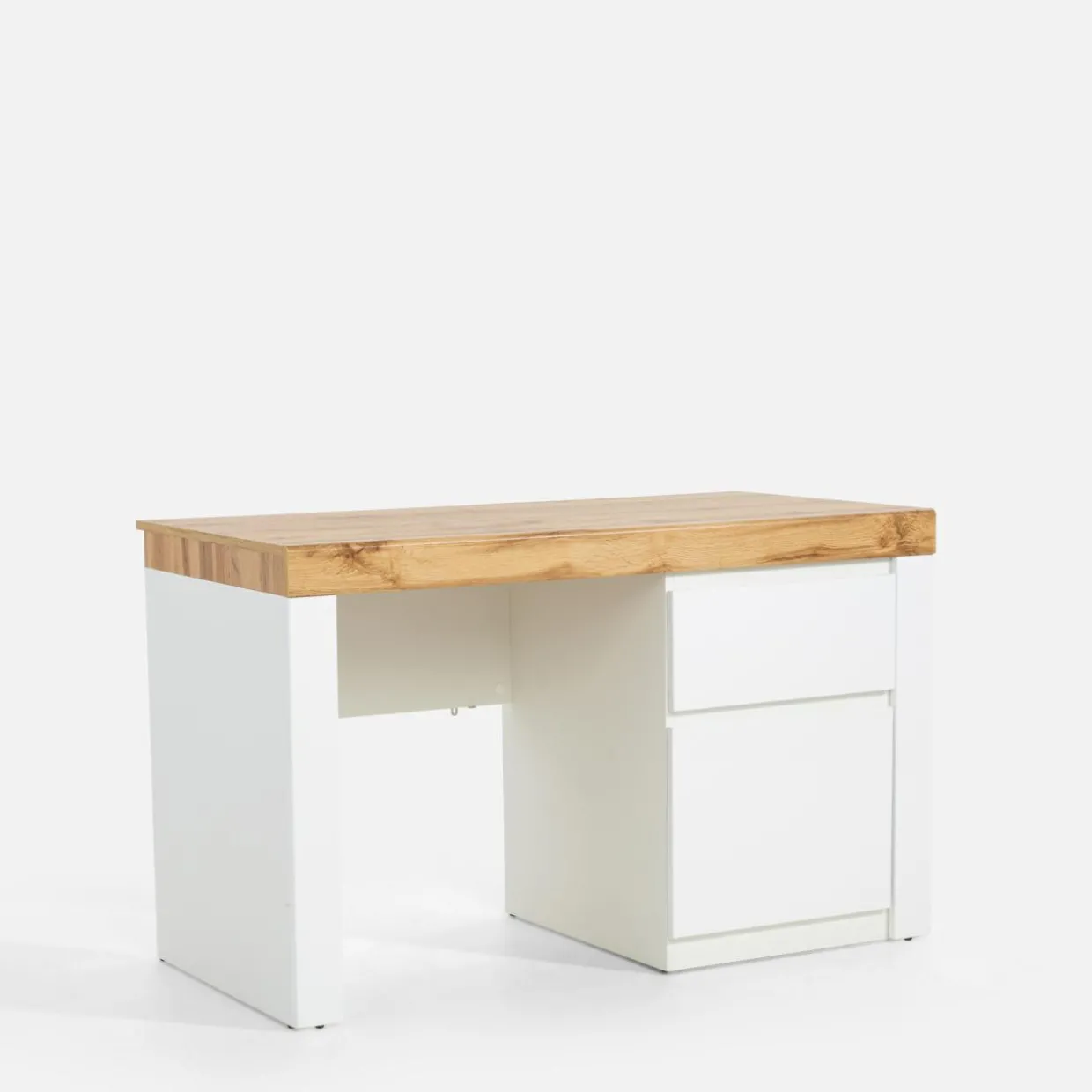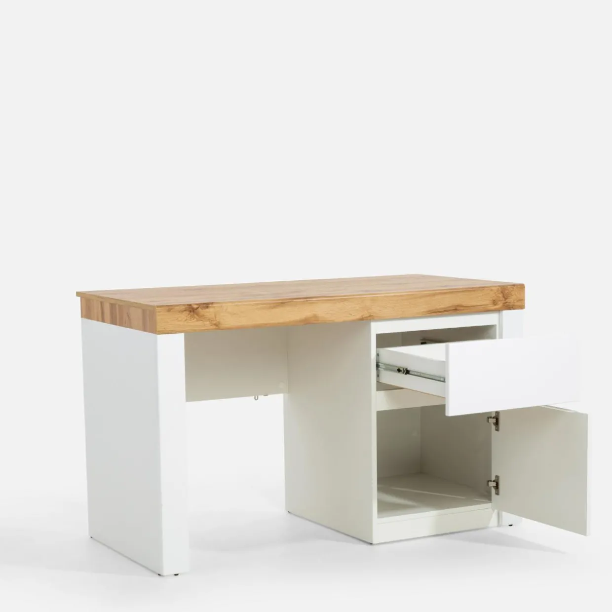 Biurko TAURUS II dzięki szerokiemu blatu oraz bocznej zabudowy z szafką i szufladą, sprawdzi się zarówno do nauki, jak i wieczornego serialu.