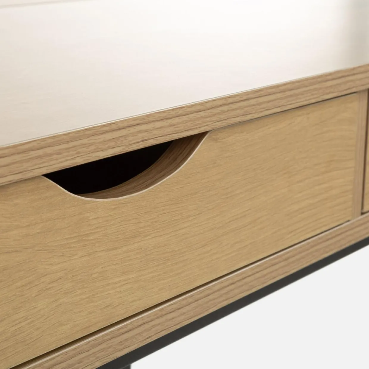 - Kompaktowe wymiary – dzięki swoim wymiarom biurko idealnie nadaje się do mniejszych pomieszczeń, oferując wystarczającą przestrzeń do pracy.