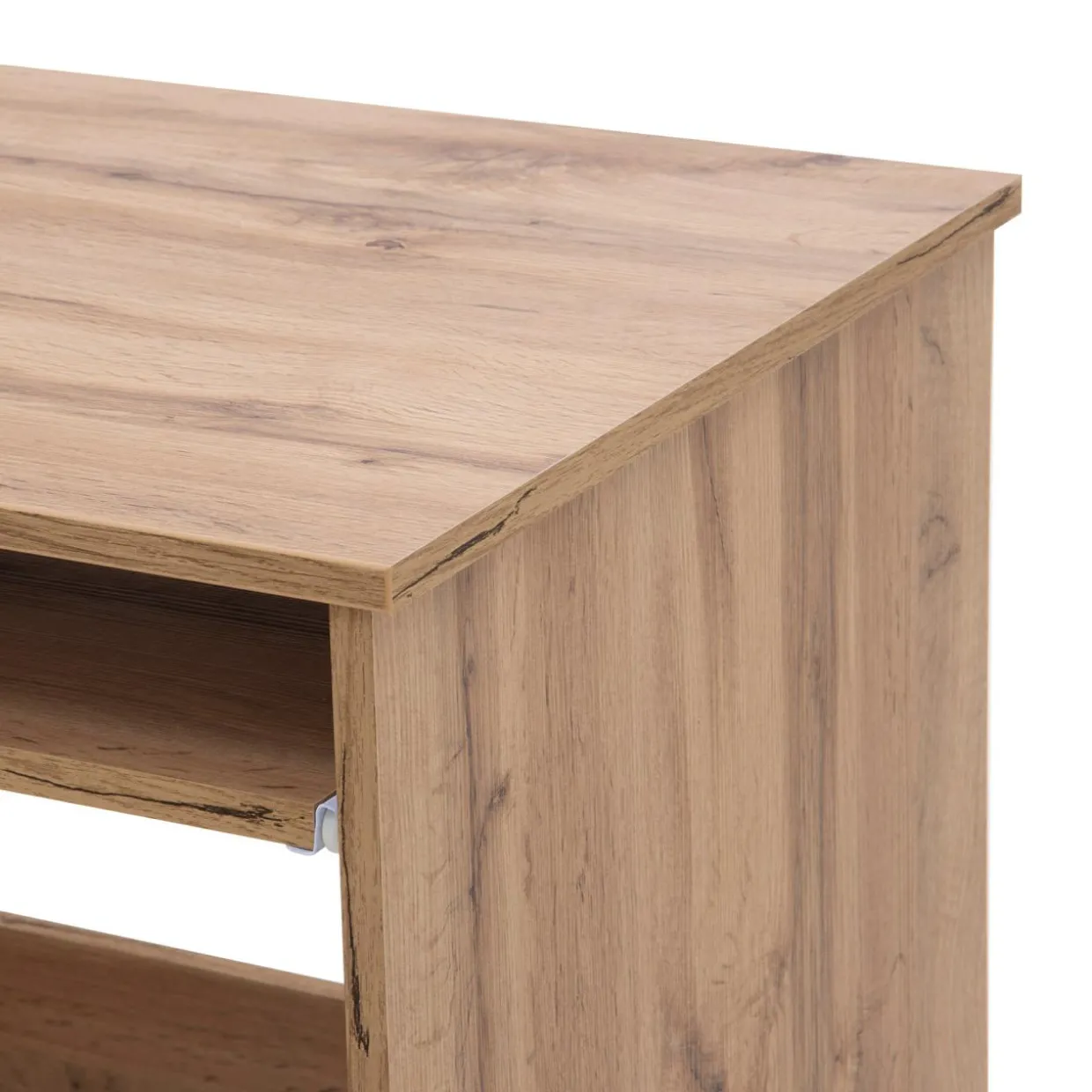 Notatniki lub klawiaturę możesz schować pod blatem, dzięki wysuwanej półce.