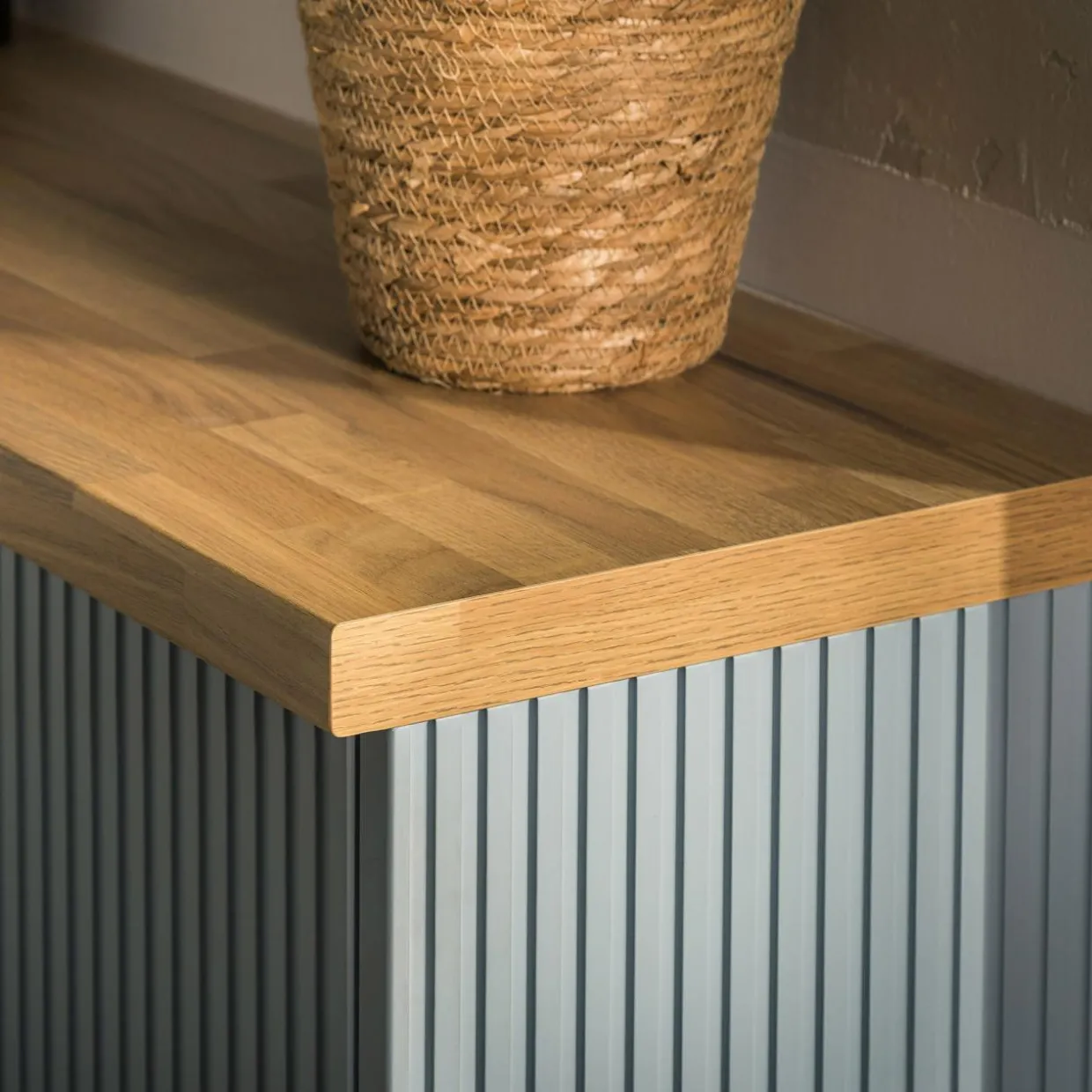 Jego boczne krawędzie są w kolorze okleiny, natomiast tył jest biały, co umożliwia jego idealne dopasowanie do kuchni w układzie liniowym oraz narożnym. Posiada wysoką odporność na uszkodzenia mechaniczne i wilgoć. Jego zaletą jest również łatwość czyszczenia oraz wysoka odporność na ścieranie.