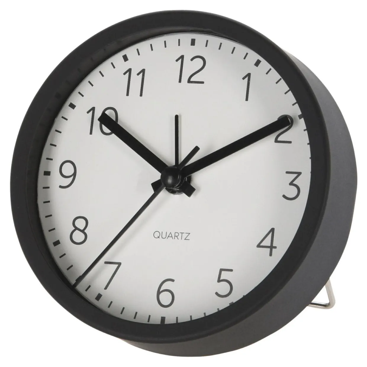 Wskazówki i sekundnik są w tym samym kolorze, co obudowa. Czarny budzik dopasujesz do wielu aranżacji.