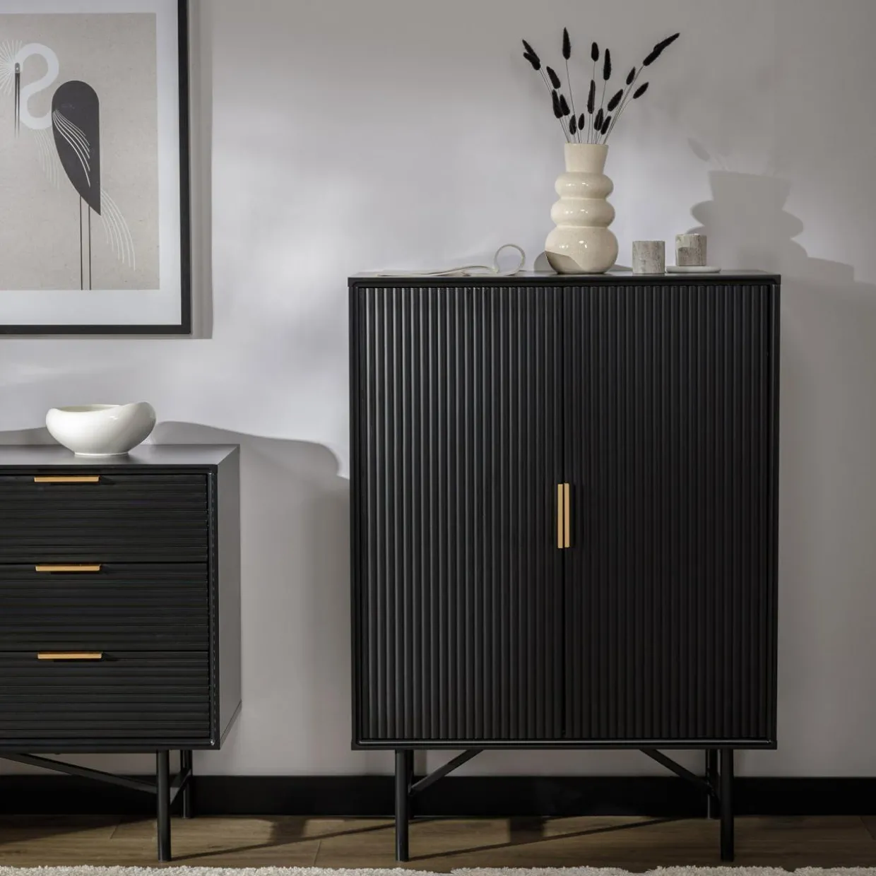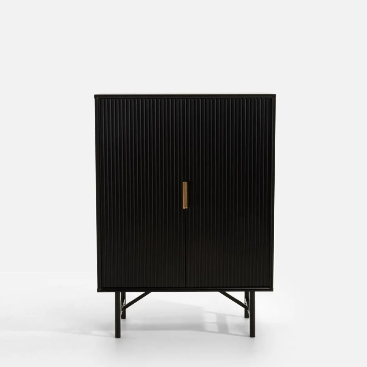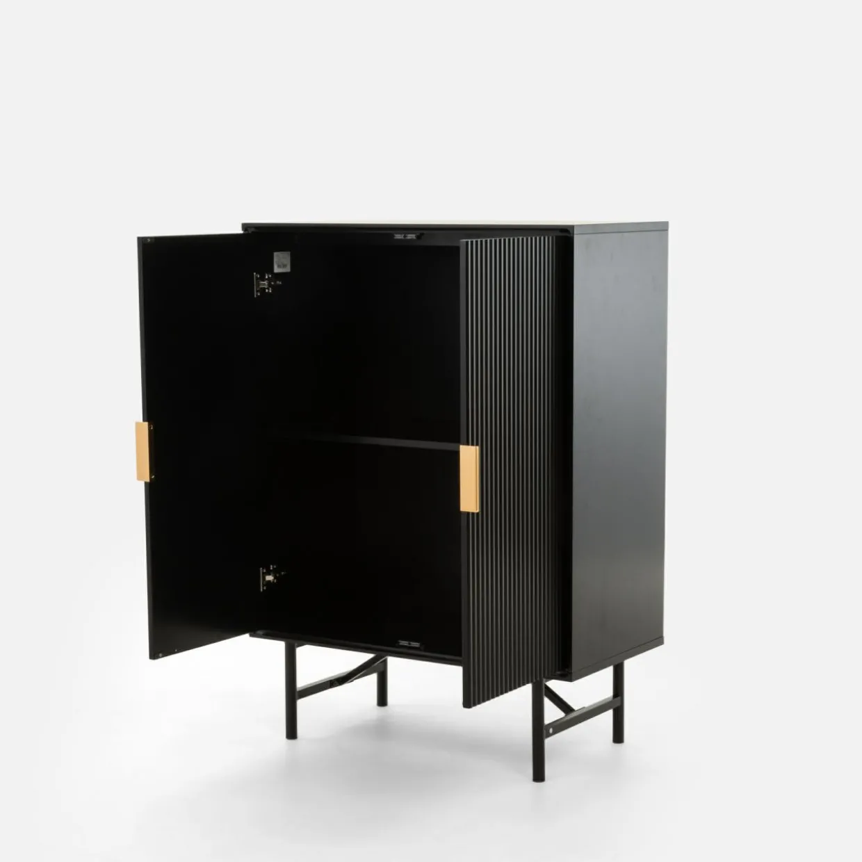 Kolekcja mebli SEVI to połączenie głębokiej czerni i złotych akcentów, które nada wnętrzu luksusowego charakteru. Proste bryły wykończone w półmacie stworzą elegancki i spójny wystrój salonu.