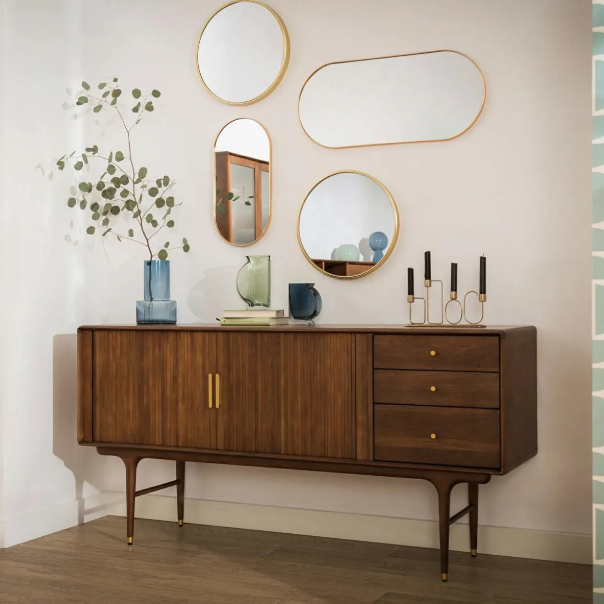 - Wyeksponuj ulubione naczynia w bufecie. Otwórz fronty lub pozostaw częściowo przesunięte, ukazując zdobione salaterki i półmiski.