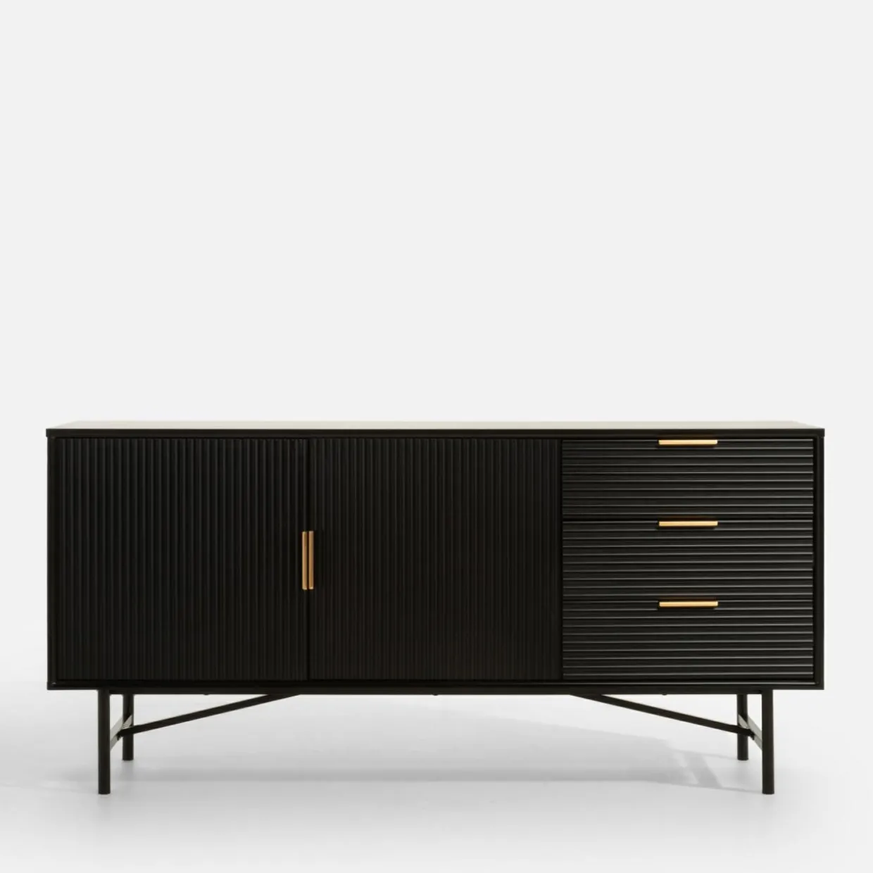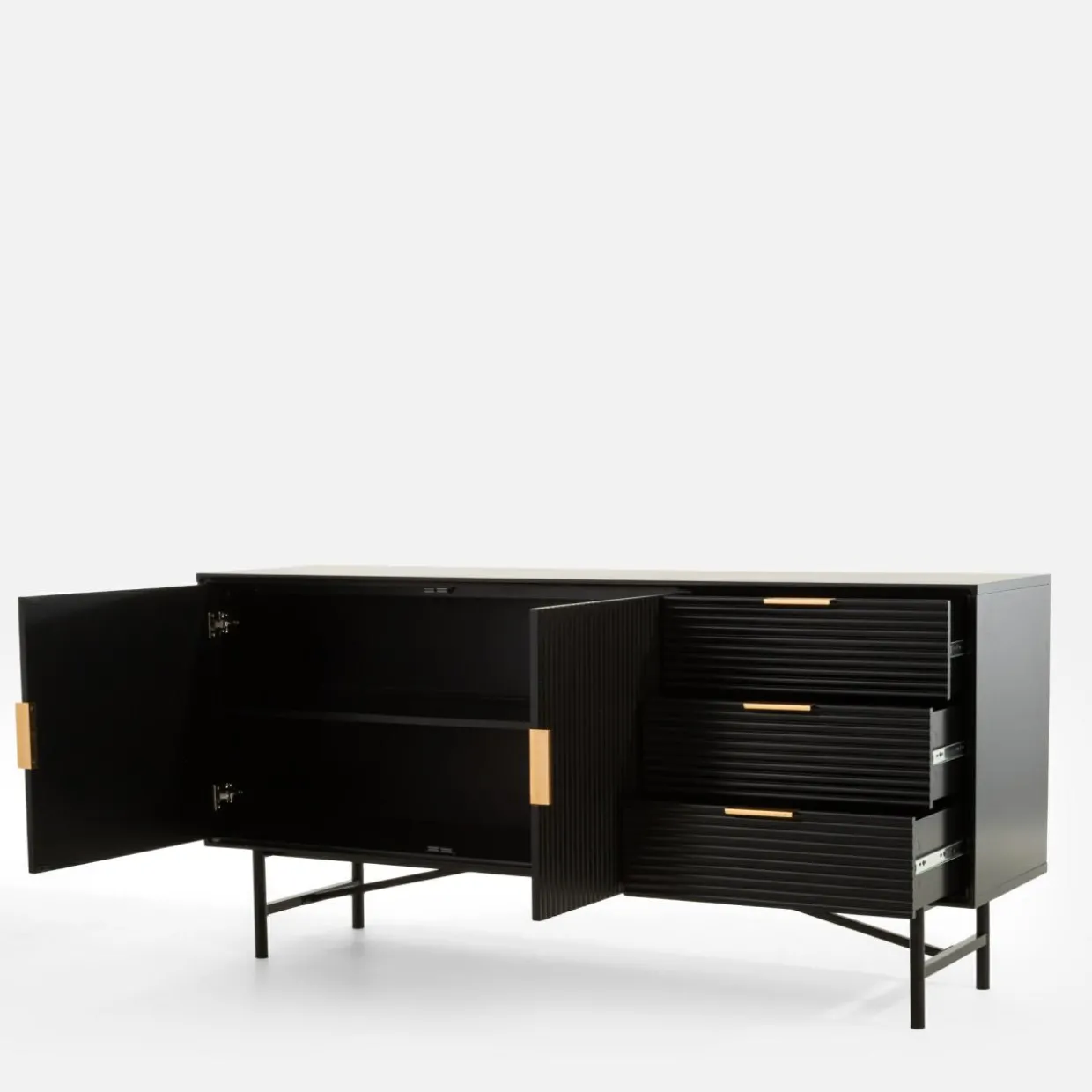Kolekcja mebli SEVI to połączenie głębokiej czerni i złotych akcentów, które nadadzą wnętrzu luksusowego charakteru. Proste bryły wykończone w półmacie stworzą elegancki i spójny wystrój salonu.
