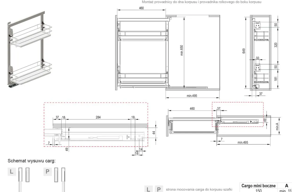 Szafka stojąca wys. 82 cm FRAME biały + cargo boczne INSIDE 15/2 półki białe
