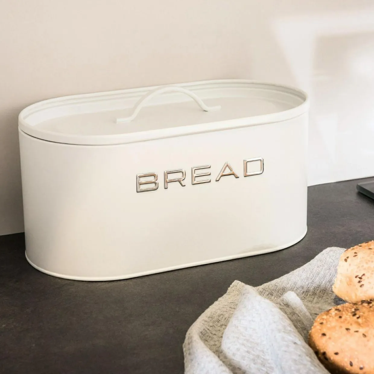 Chlebak metalowy z pokrywą biały