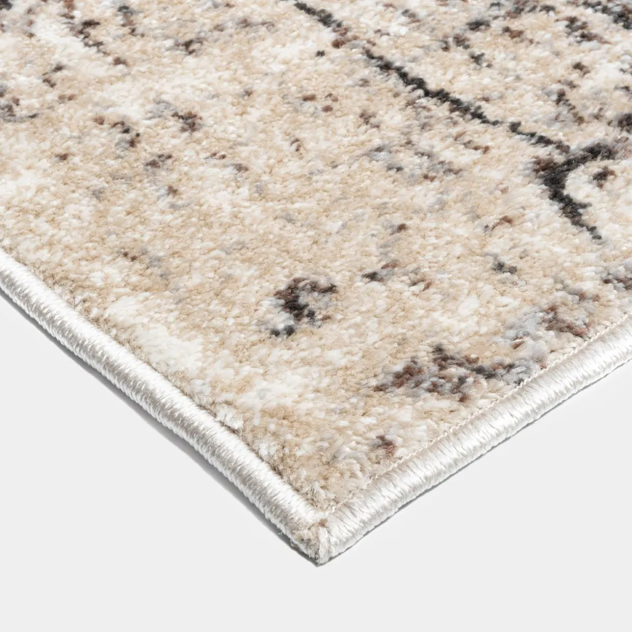 - Dywan wykonany został w 100% z włókien polipropylenowych, poddanych obróbce metodą heat set. Proces ten polega na uszlachetnieniu włókien, dzięki czemu przypominają one włókna wełny. Runo dywanu jest tak samo puszyste i miłe w dotyku jak to wełniane.
