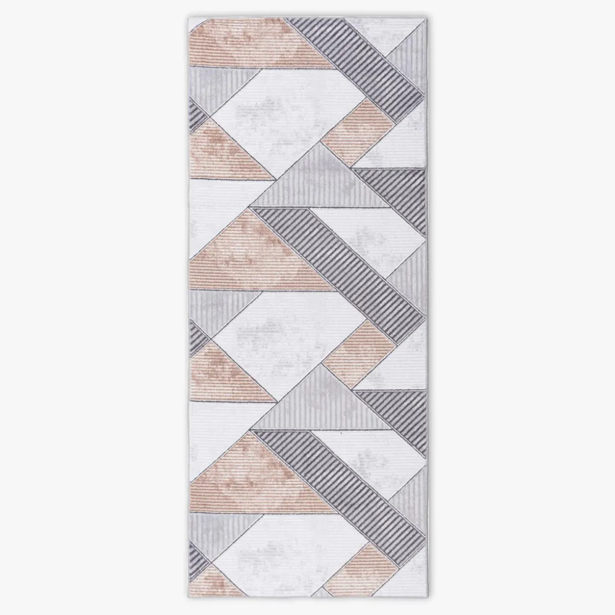 Szukasz pokrycia podłogowego, które sprawdzi się w miejscu często uczęszczanym? Wybierz szaro-beżowy chodnik LONG z geometrycznym wzorem w trójkąty. Nada wnętrzu niepowtarzalny charakter.