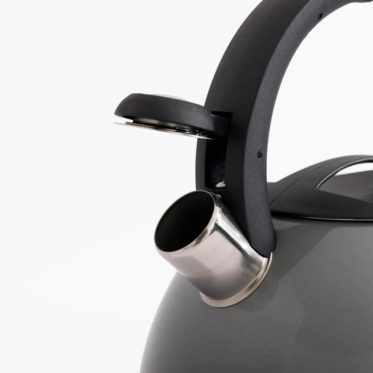 - W uchwycie znajduje się przycisk, który odchyla gwizdek. Wygodnie zalejesz herbatę lub kawę.
