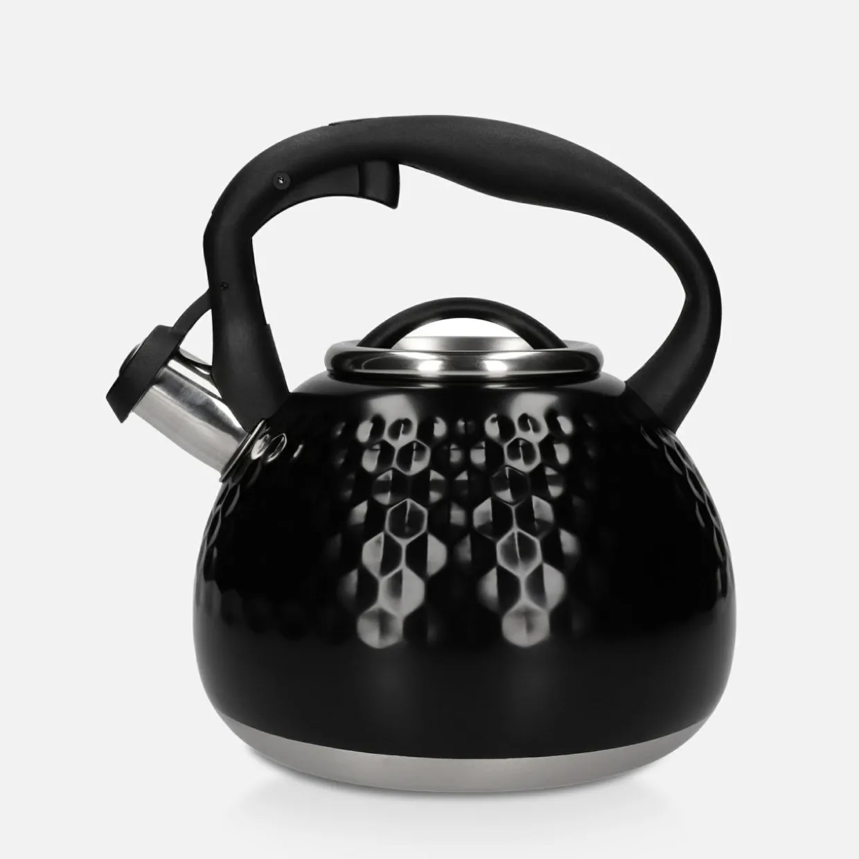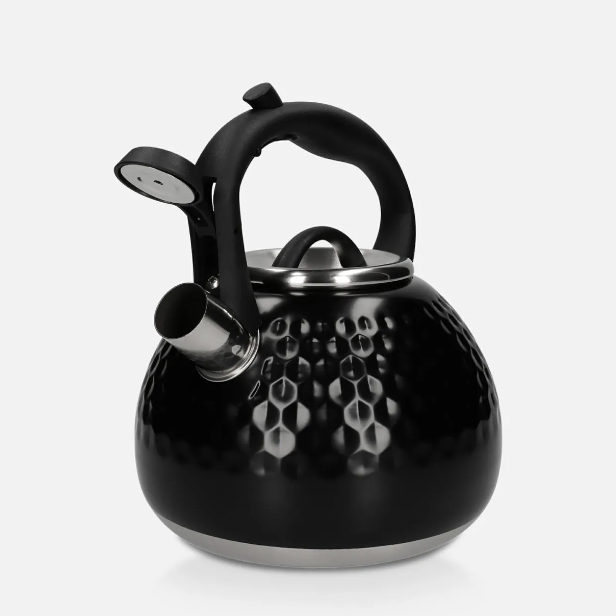 - Posiada gwizdek, który uniesiesz, naciskając na przycisk w ergonomicznym uchwycie. Wygodnie zalejesz wodą ulubiony napar.