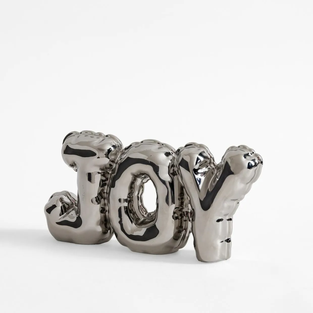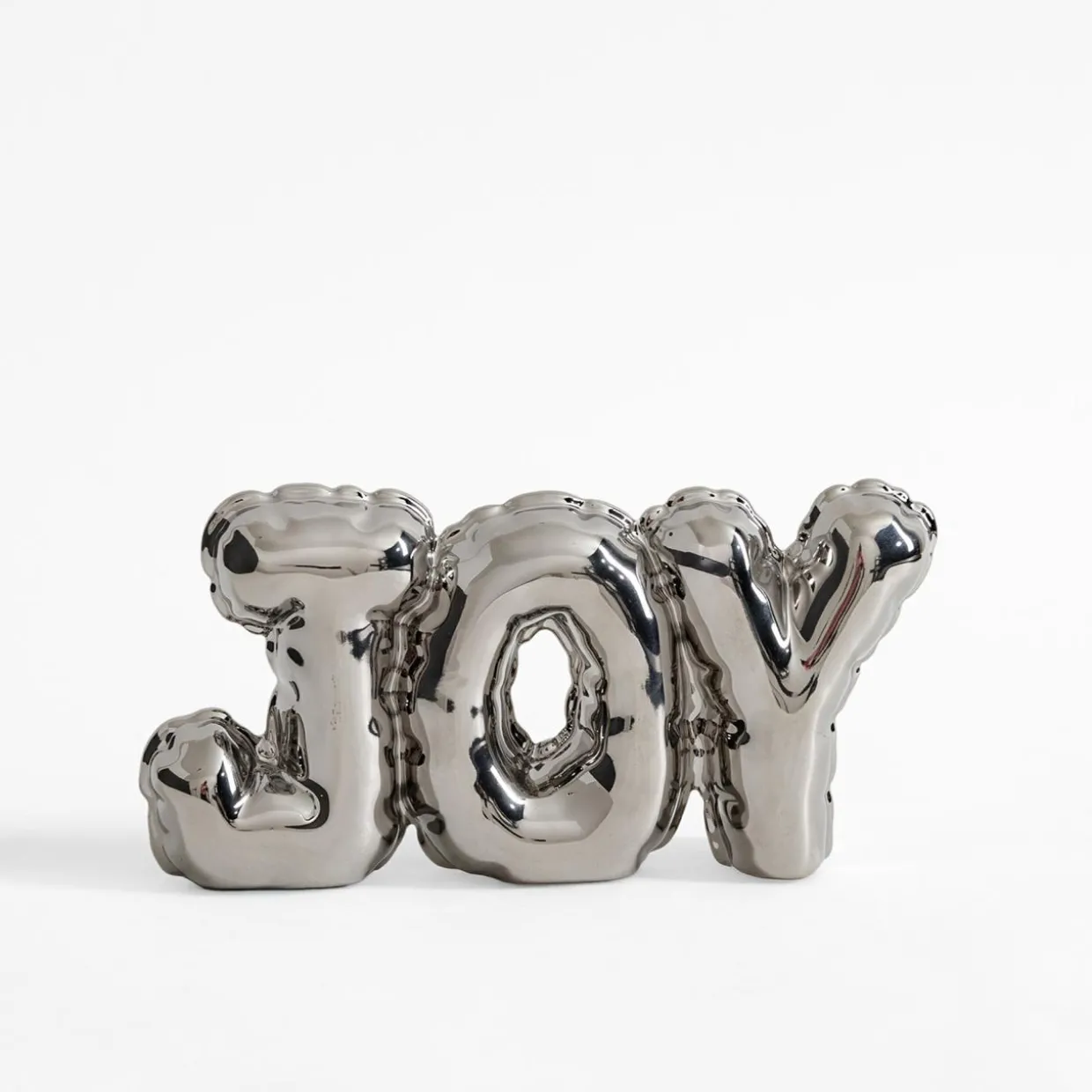 Dekoracja napis JOY jest nietuzinkowym dodatkiem do Twojego salonu lub przedpokoju. Wygląd przypominający srebrny balon wyróżni się i przyciągnie uwagę gości.