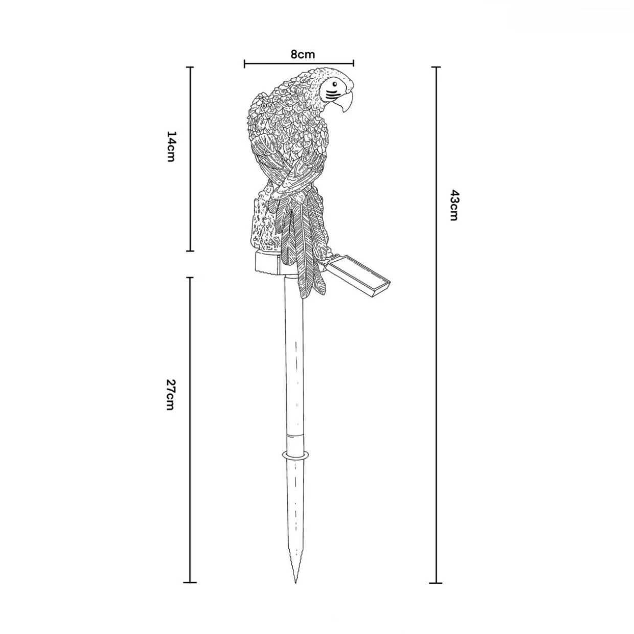 - Papuga ozdobi zewnętrzną część Twojego domu. Posiada w dolnej części zaostrzony koniec, który ułatwia osadzenie dekoracji w podłożu.