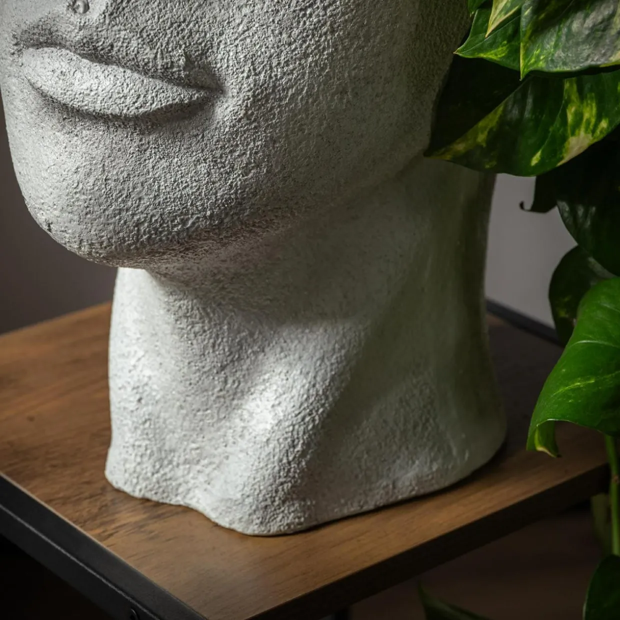 Dodaj świeżości i subtelnego stylu do swojego wnętrza lub ogrodu dzięki białej donicy w kształcie twarzy. Jej wyjątkowy design i kolor sprawiają, że doskonale wpisuje się w nowoczesne i minimalistyczne aranżacje.