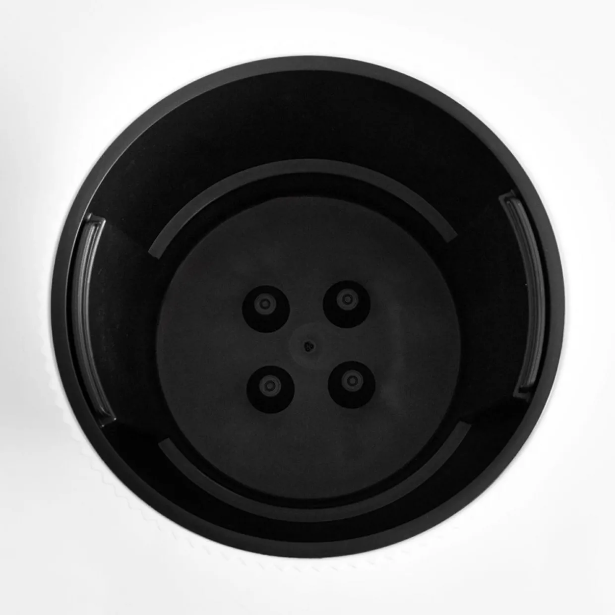 Doniczka posiada wyjmowany wkład z uchwytami w czarnym kolorze.