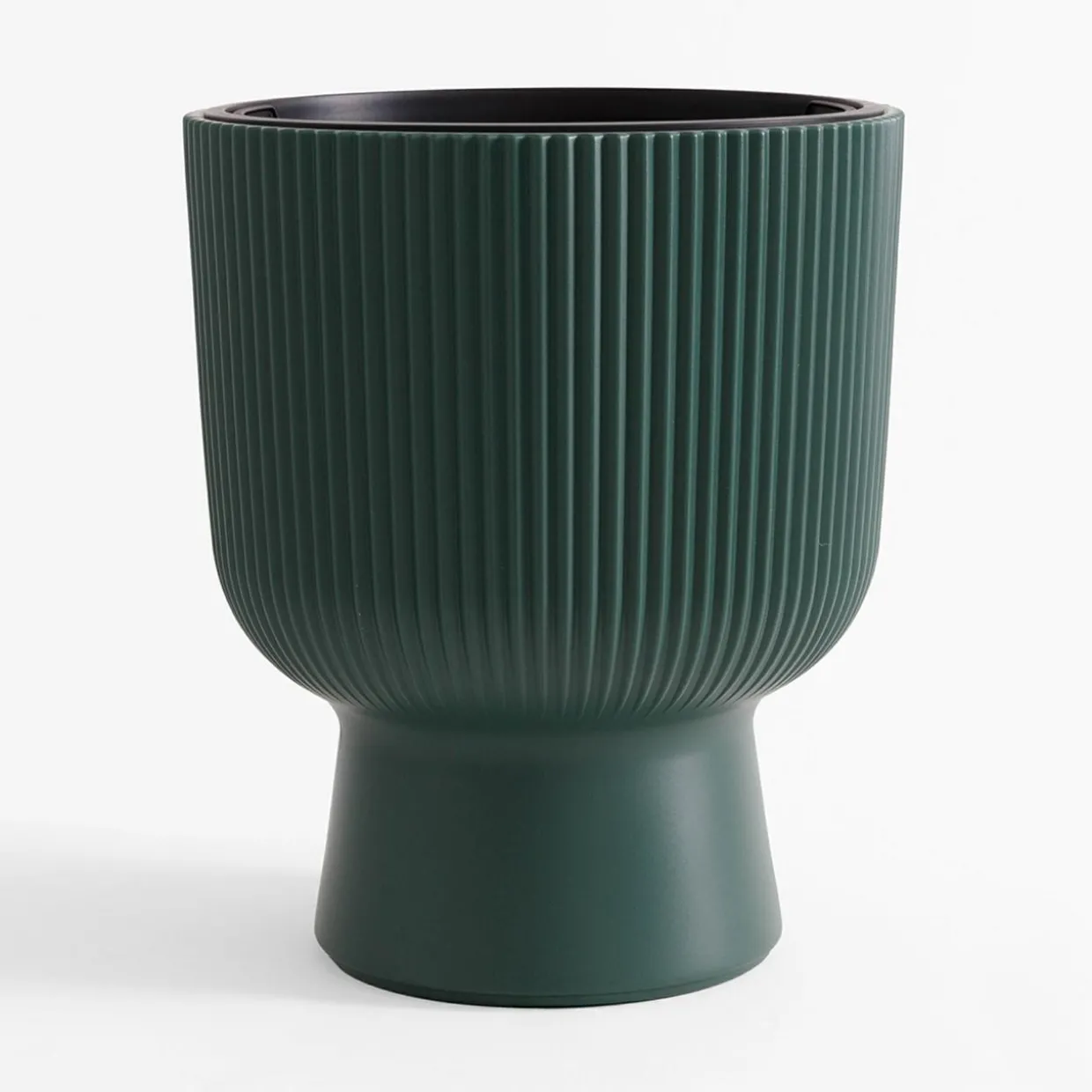 - Zwężany u podstawy, cylindryczny kształt doniczki wprowadza harmonię i klasyczną elegancję.