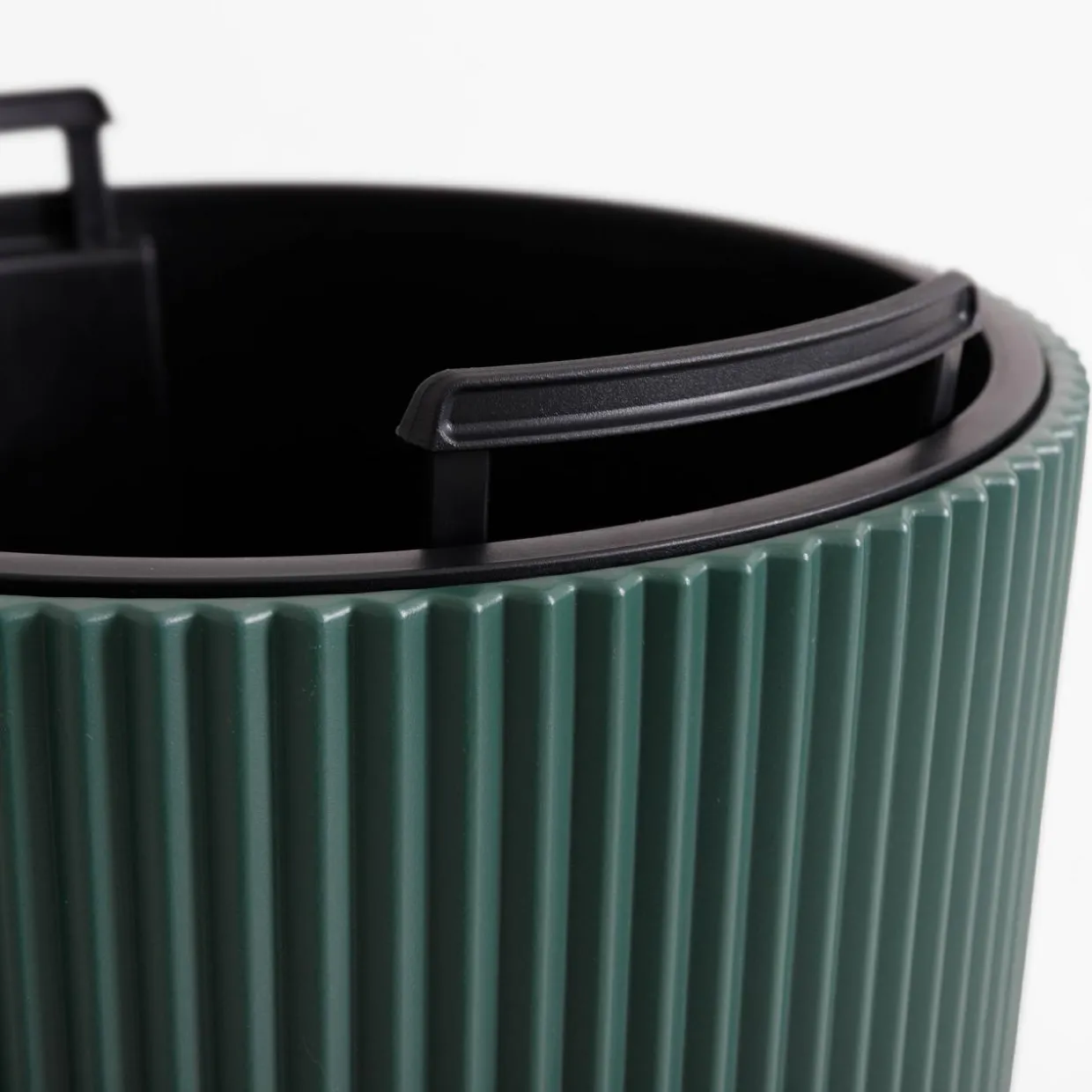Doniczka posiada wyjmowany wkład z uchwytami w czarnym kolorze.