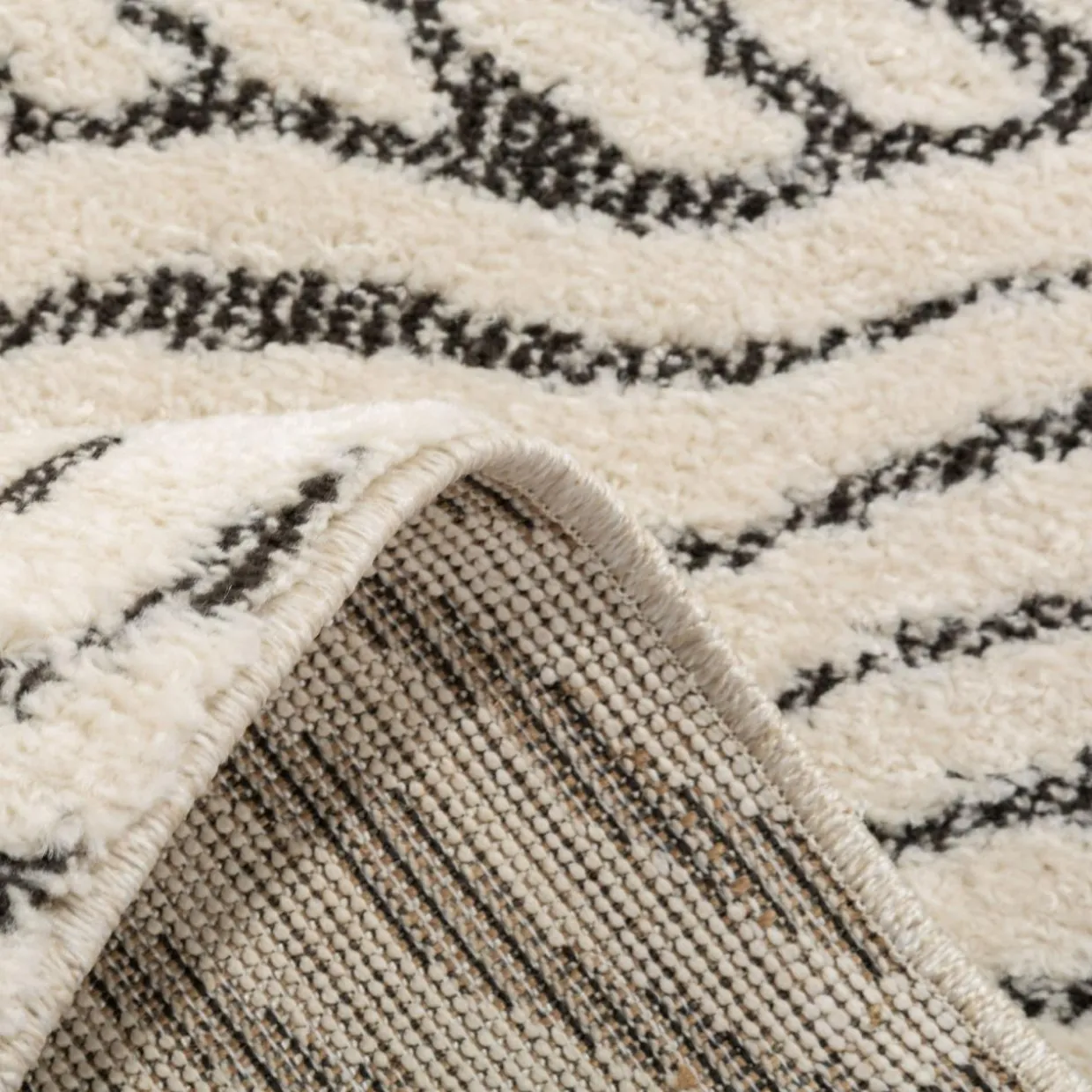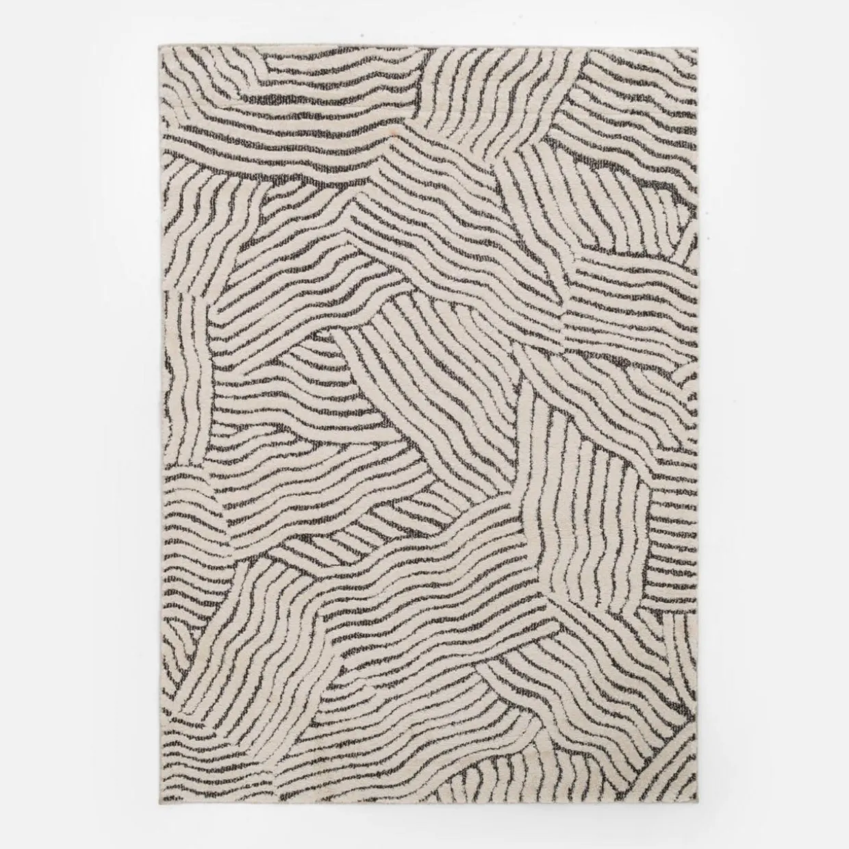 Ożyw wnętrze ciekawym abstrakcyjnym wzorem dywanu DEUS. Mozaika fal nadaje mu unikalny charakter, które przełamie monotonność gładkich podłóg. Kontrastowe połączenie kremowego i czarnego koloru wprowadzi do aranżacji ciekawy akcent.