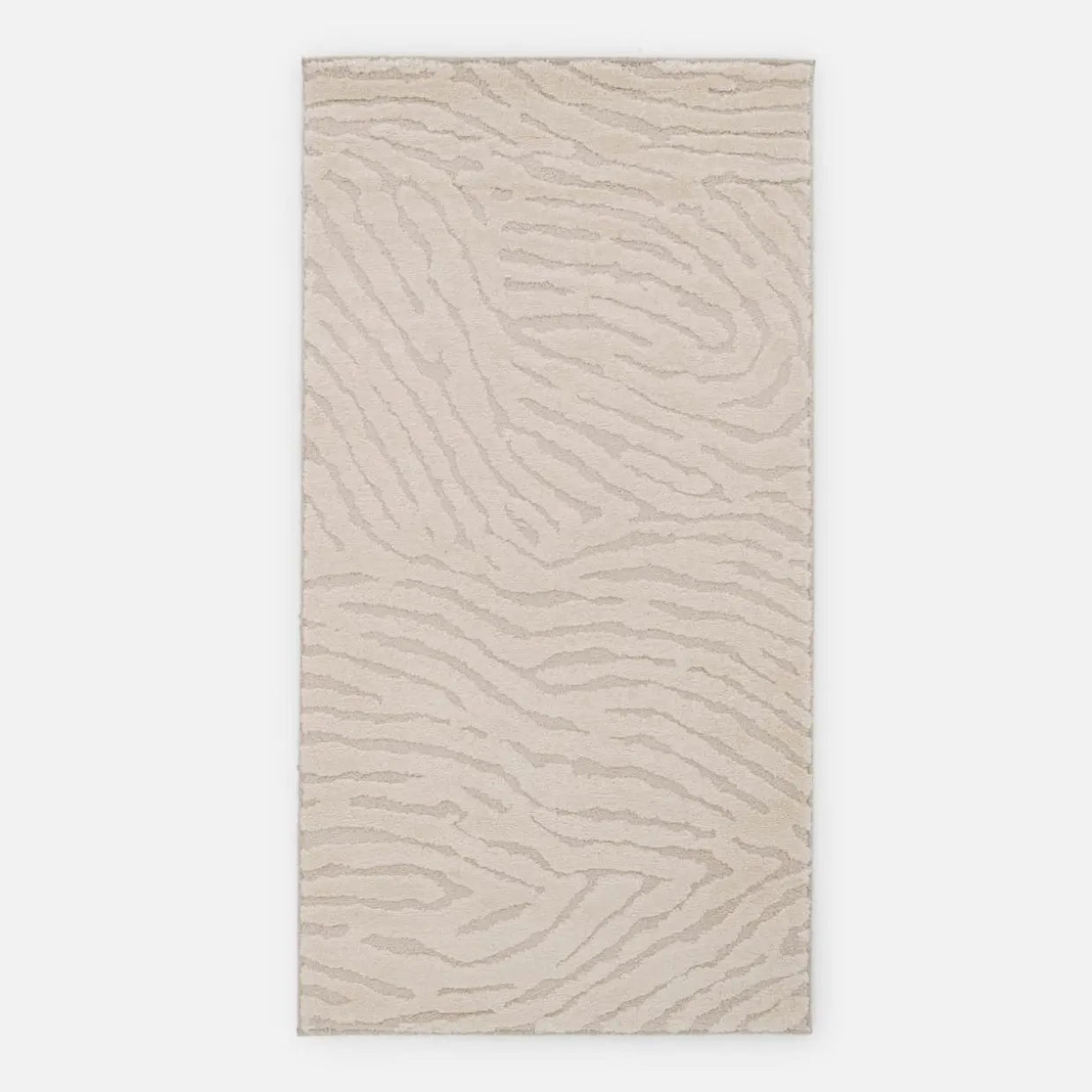 - Kremowy kolor i subtelny wzór abstrakcyjnych fal dodają wnętrzu spokoju, tworząc przyjemne otoczenie do relaksu.