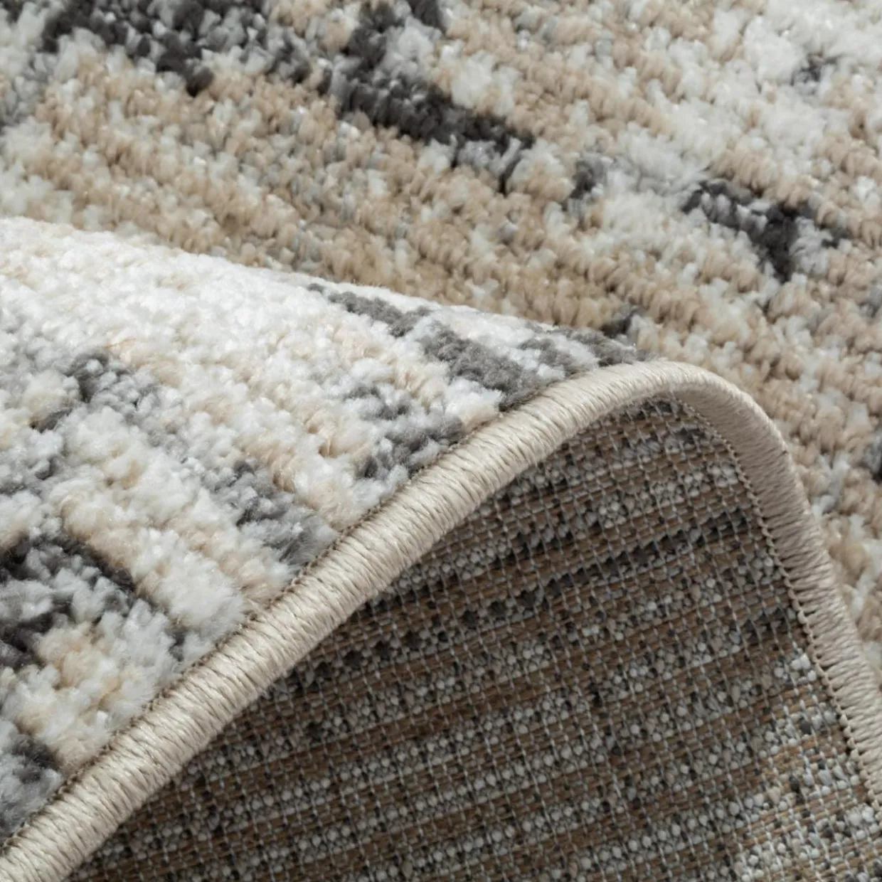 Kremowo-szary dywan HARMONY z abstrakcyjnym wzorem wprowadza stylowy akcent do wnętrz w stylu skandynawskim, nowoczesnym i industrialnym.