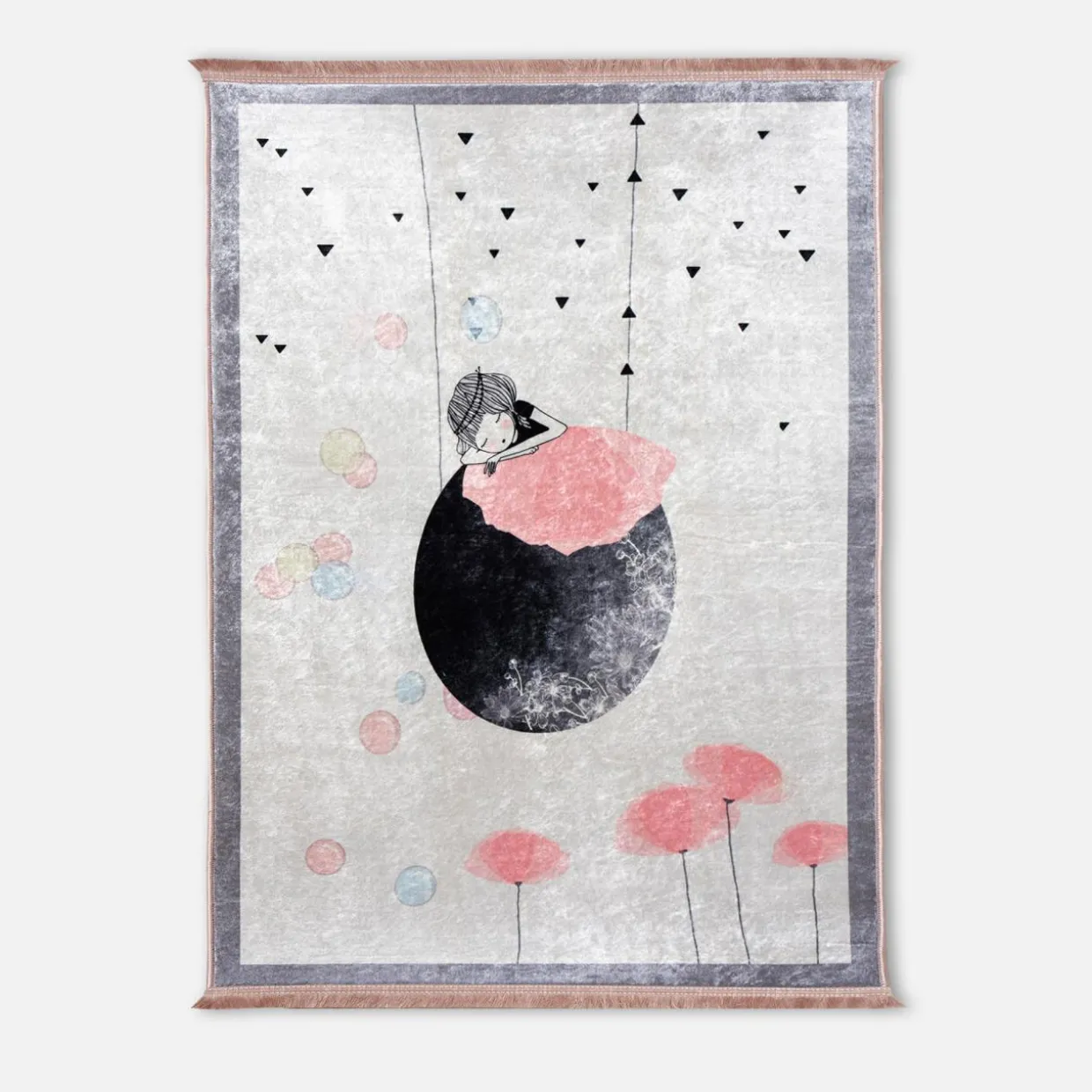 Chcesz stworzyć swojej księżniczce przyjemne miejsce do zabawy? Ozdób jej pokój wyjątkowym pokryciem podłogowym: dywanem ZALA PETRA z motywem śpiącej dziewczynki w otoczeniu pastelowych kwiatów i baniek mydlanych. Wniesie do pokoju Twojego dziecka mnóstwo radości i pozytywnej energii.