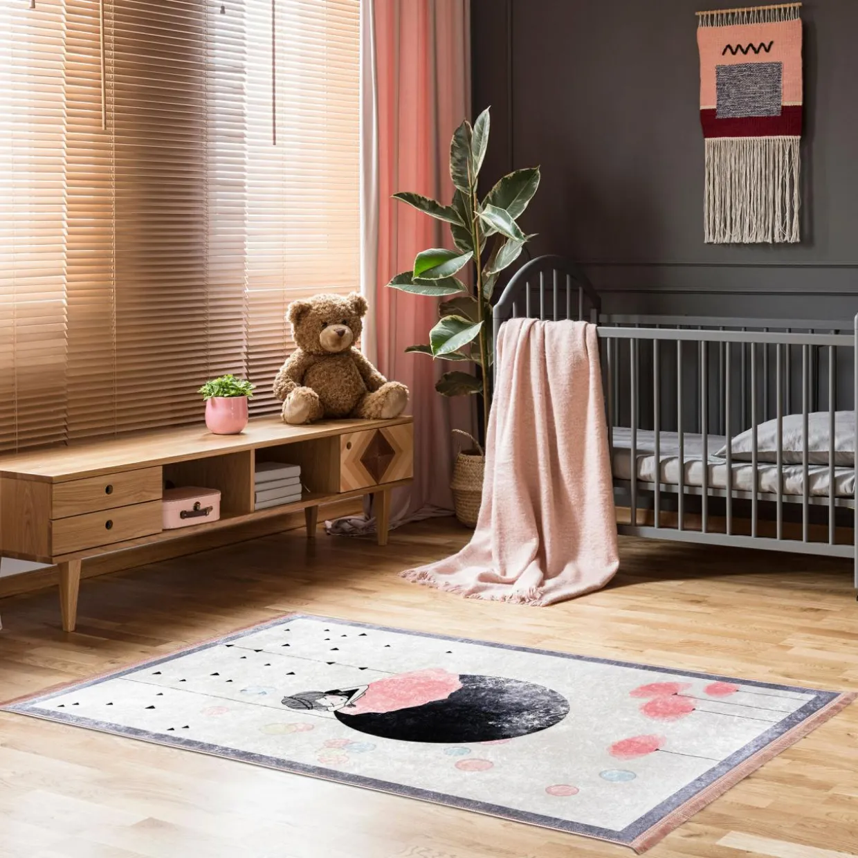 - Antypoślizgowe podłoże zabezpieczy dywan przed przemieszczaniem się. Wybierając go, zadbasz o bezpieczeństwo swojego dziecka.
