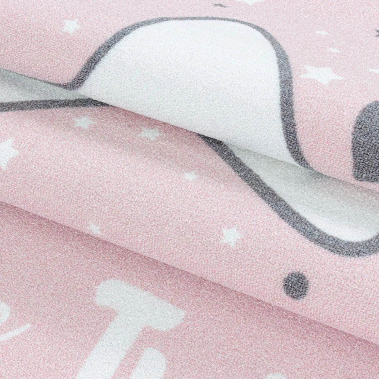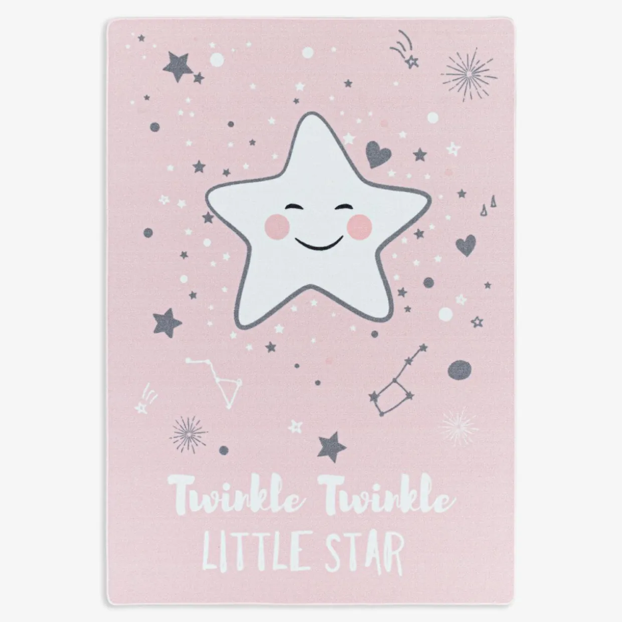 Twoje dziecko marzy o tym, aby przenieść się do bajkowego świata? Teraz to możliwe. Zdecyduj się na zakup różowego dywanu PLAY z motywem uśmiechniętej gwiazdki. Uroczy napis „Twinkle twinkle little star” odwołuje się do słów kołysanki, która w polskiej wersji językowej brzmi: „Mrugaj, mrugaj gwiazdko ma„.