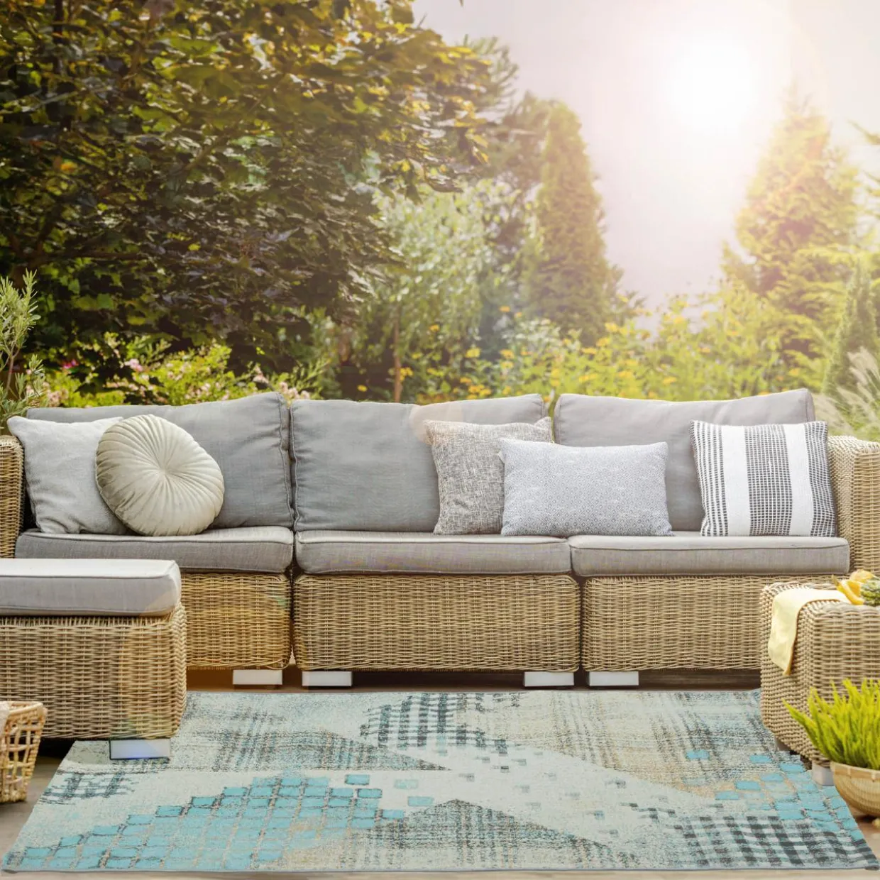 Chcesz, aby Twój przedpokój wyglądał wyjątkowo? Zadbaj o jego stylowy wygląd z szaro-turkusowym dywanem PATCHWORK MALTA o geometrycznym charakterze. Wprowadzi do Twojego wnętrza industrialny klimat. Płasko tkane runo sprawdzi się w holu.