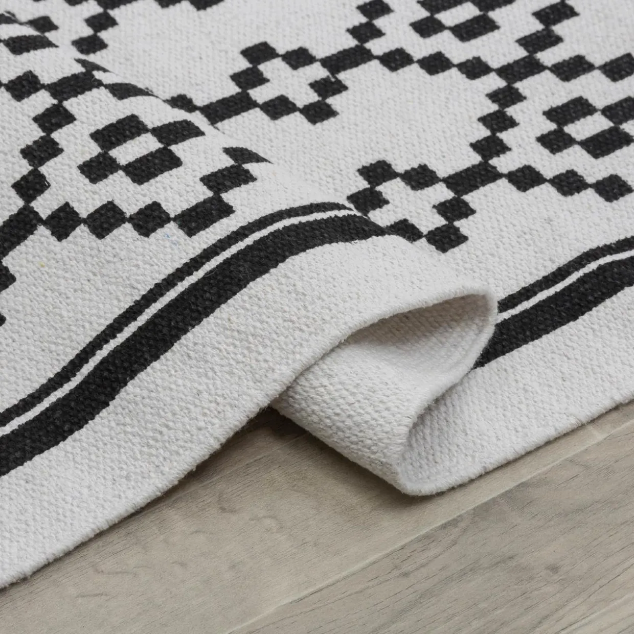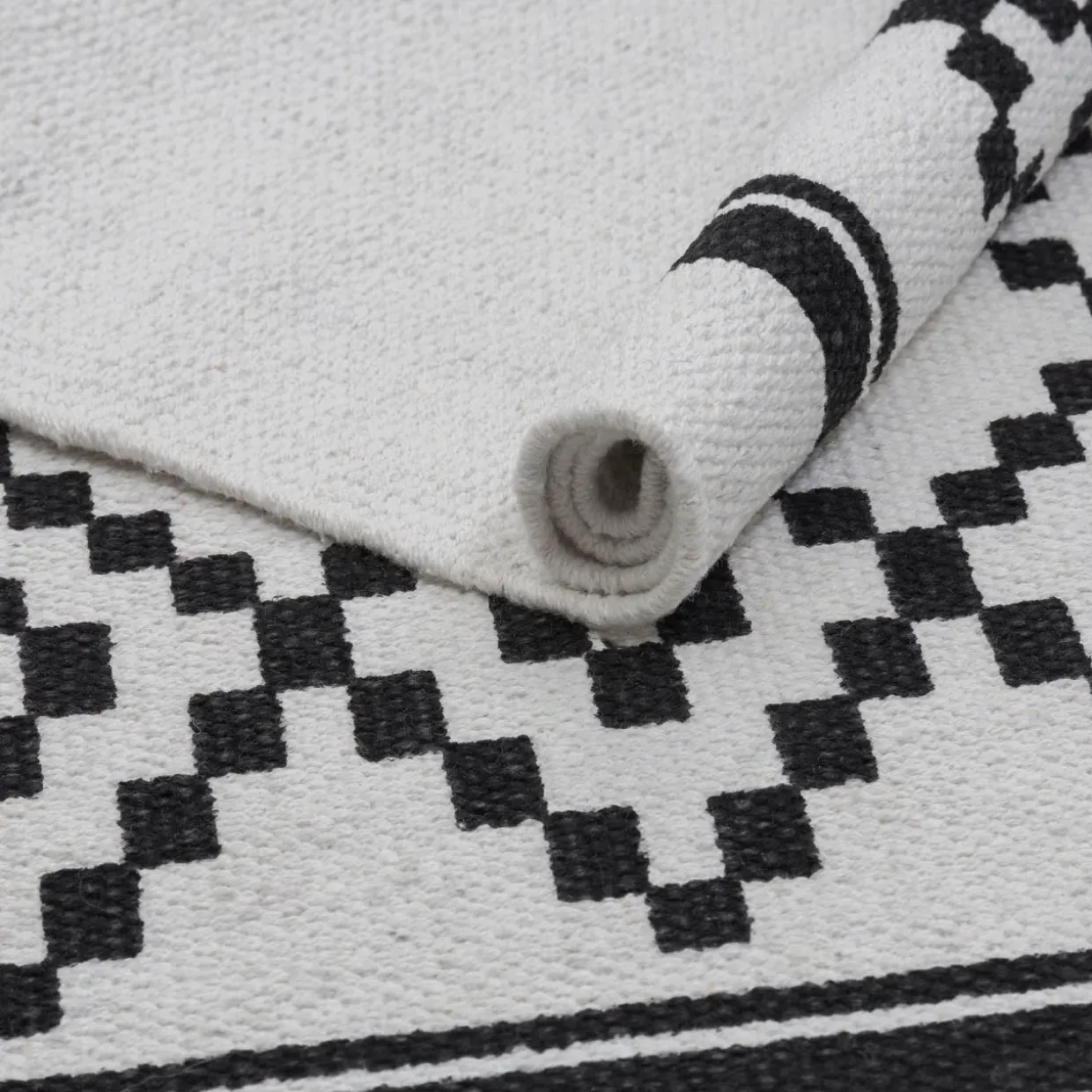 - Dywanik SCANDI z geometrycznym wzorem wykonany jest z bawełny w 90% (10% stanowią pozostałe włókna). Jeśli lubisz tkaniny z naturalnych surowców, ten dywanik jest dla Ciebie.