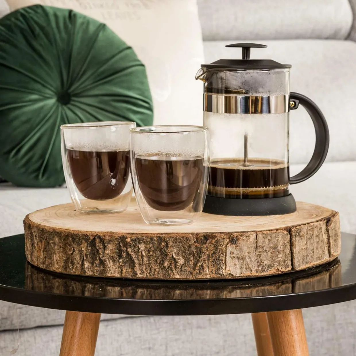 Dzięki mechanizmowi french press – czyli prostemu tłokowi z sitkiem, przeszkadzające fusy pozostaną na dnie dzbanka. Należy tylko zalać odpowiednią ilość kawy lub herbaty i odczekać ok. 3 minuty. Potem można już usiąść i delektować się ulubionym, klarownym napojem.
