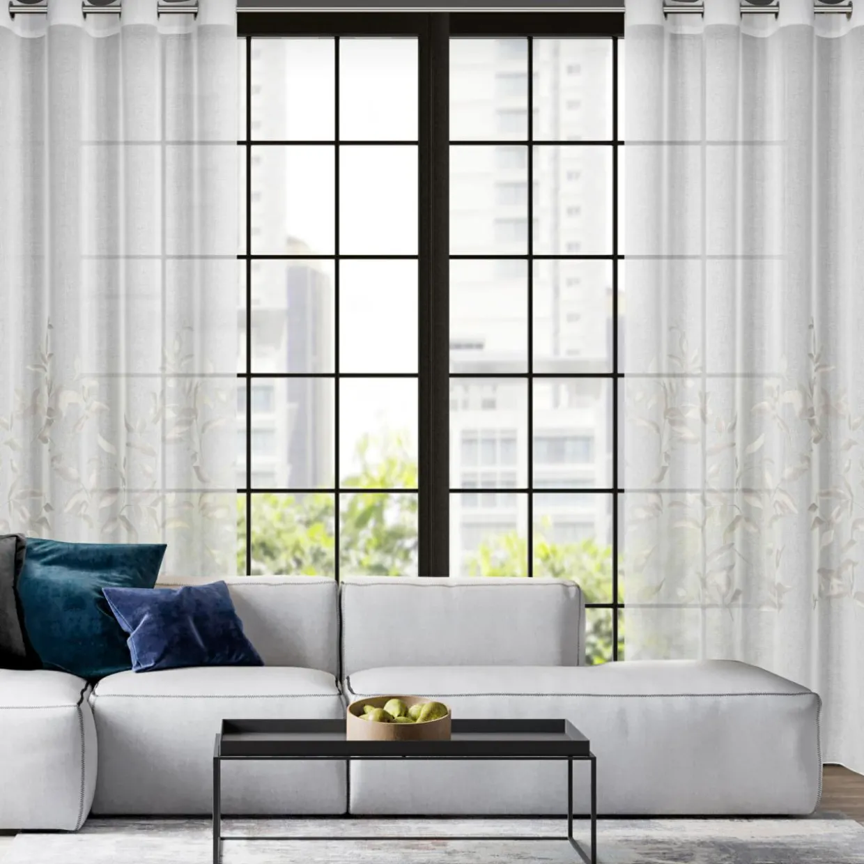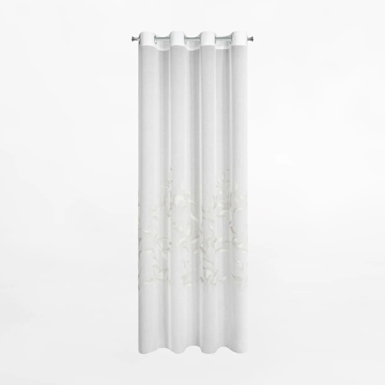 Biała-srebrna firana na przelotkach z kolekcji ESTELLA jest gotowa do zawieszenia karniszu z drążkiem. Nadasz wnętrzu nowoczesnego charakteru.