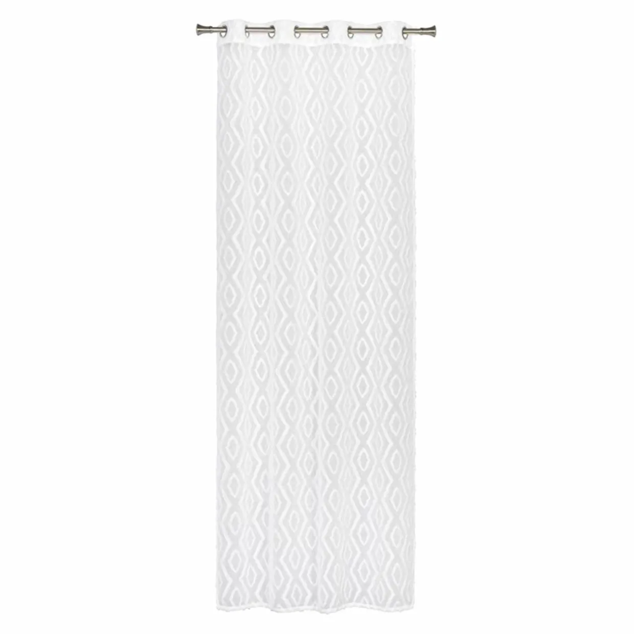 - Firana TULUM jest uszyta z materiału, który jest ozdobiony wzorem geometrycznych figur.