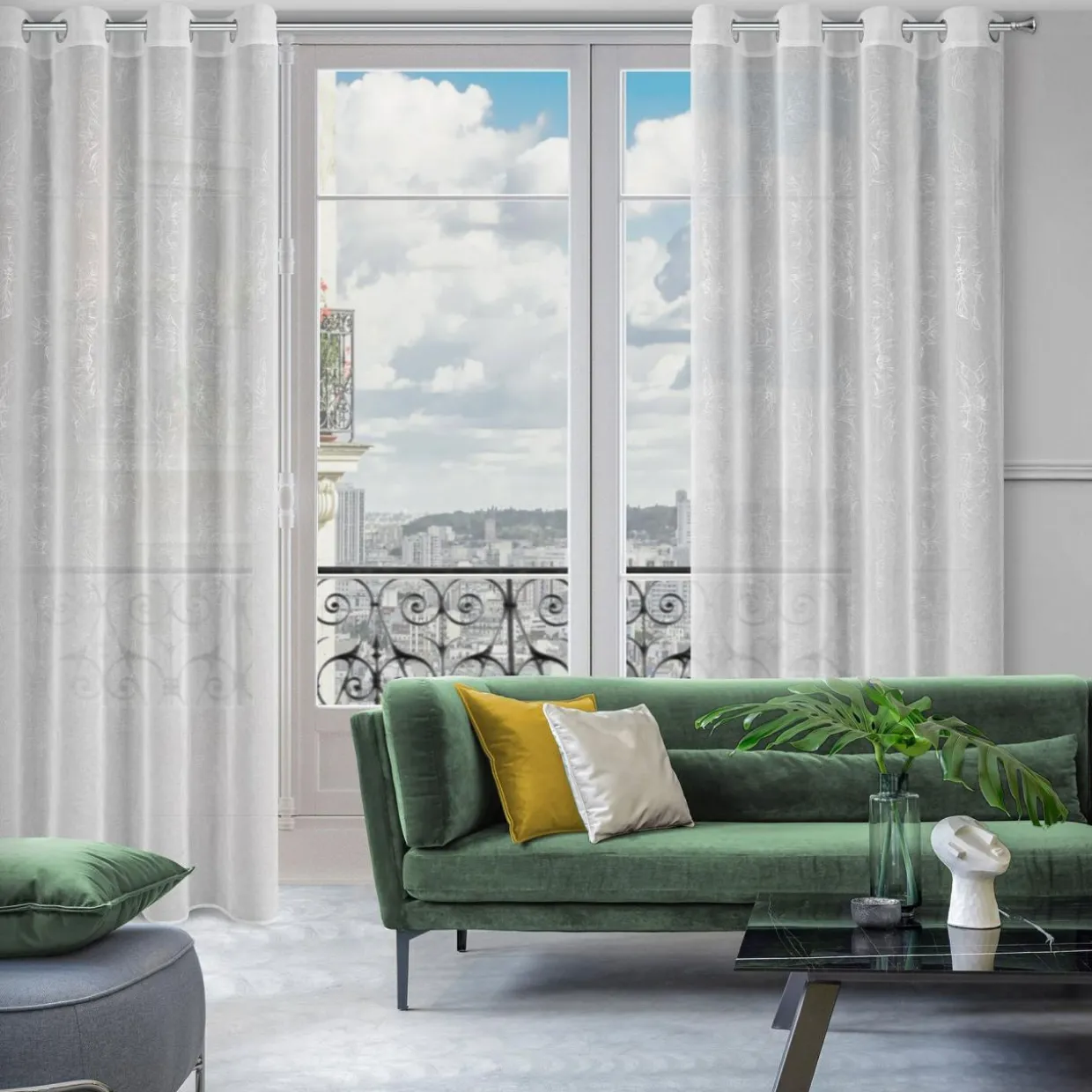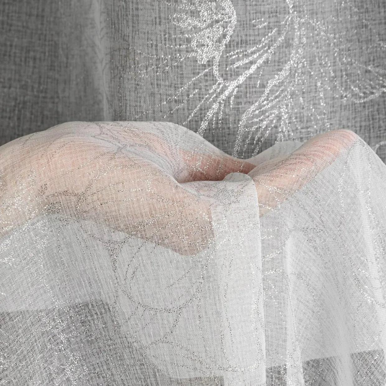 - Srebrne kwiaty na półprzezroczystej tkaninie sprawią, że w pokoju zrobi się jaśniej.