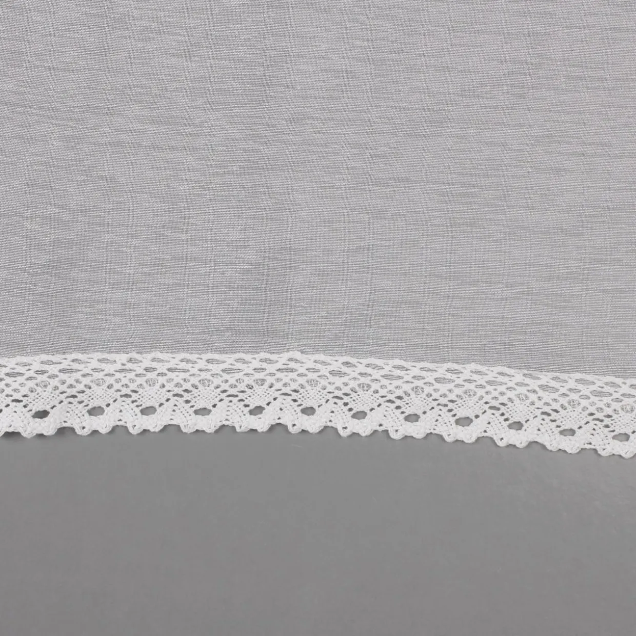 - Dół firany ozdobiono koronką o subtelnym wzorze.