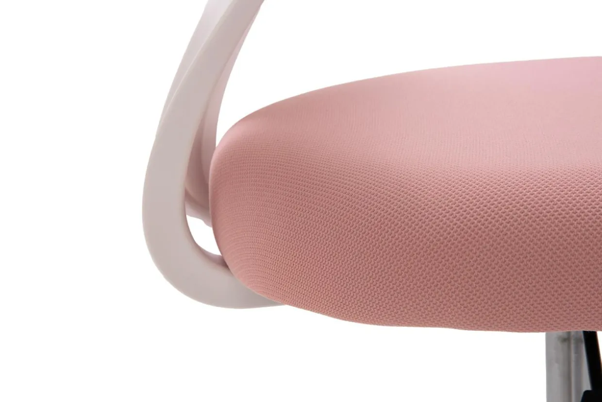- Tapicerka została wykonana z przewiewnej siatki mesh w kolorze różowym.