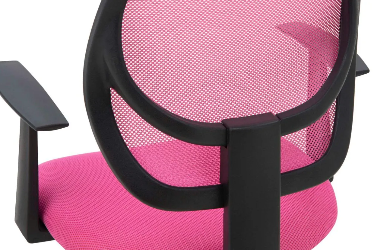 Wybierz fotel obrotowy NOPE z oparciem oraz siedziskiem wykonanym z przewiewnej siatki mesh w kolorze różowym.