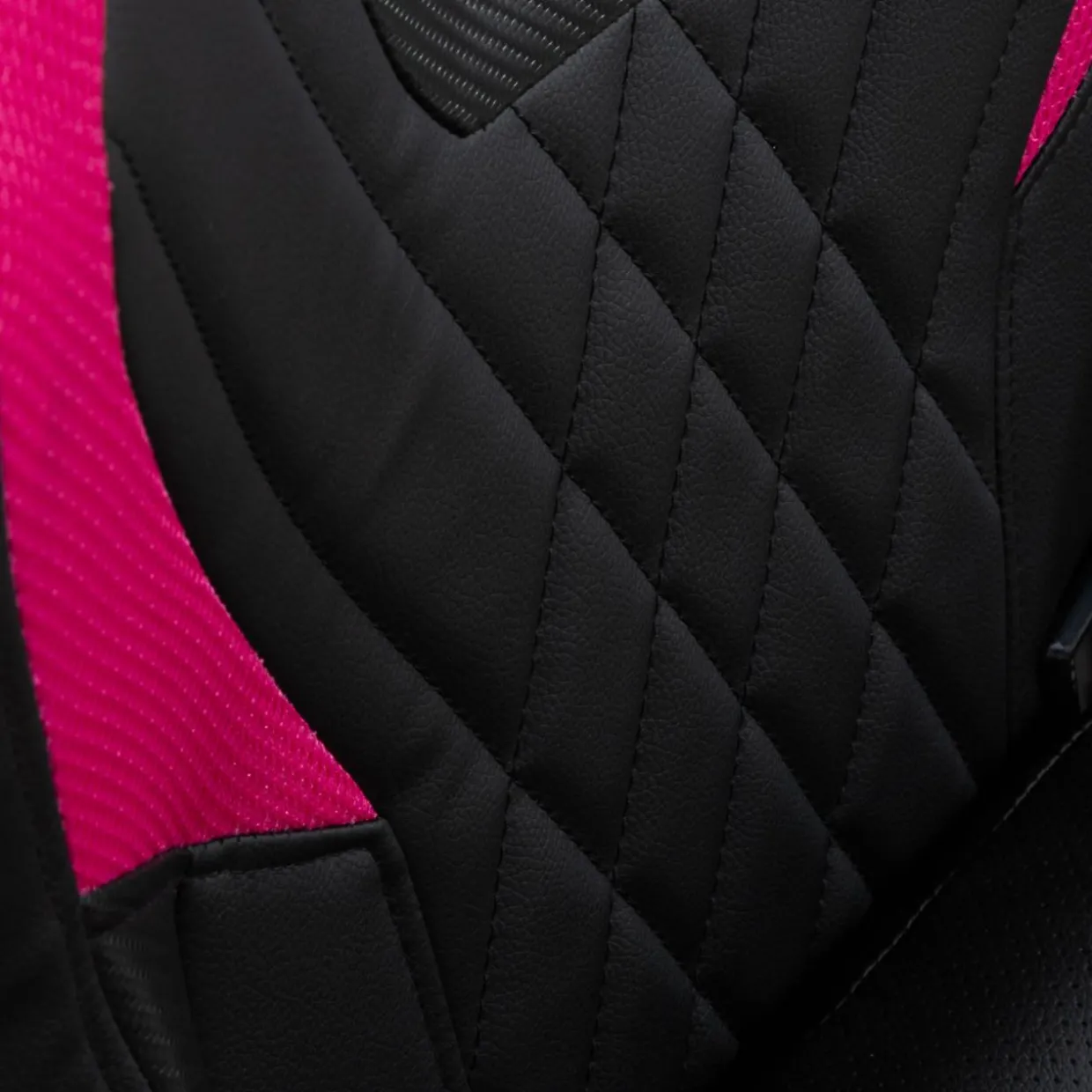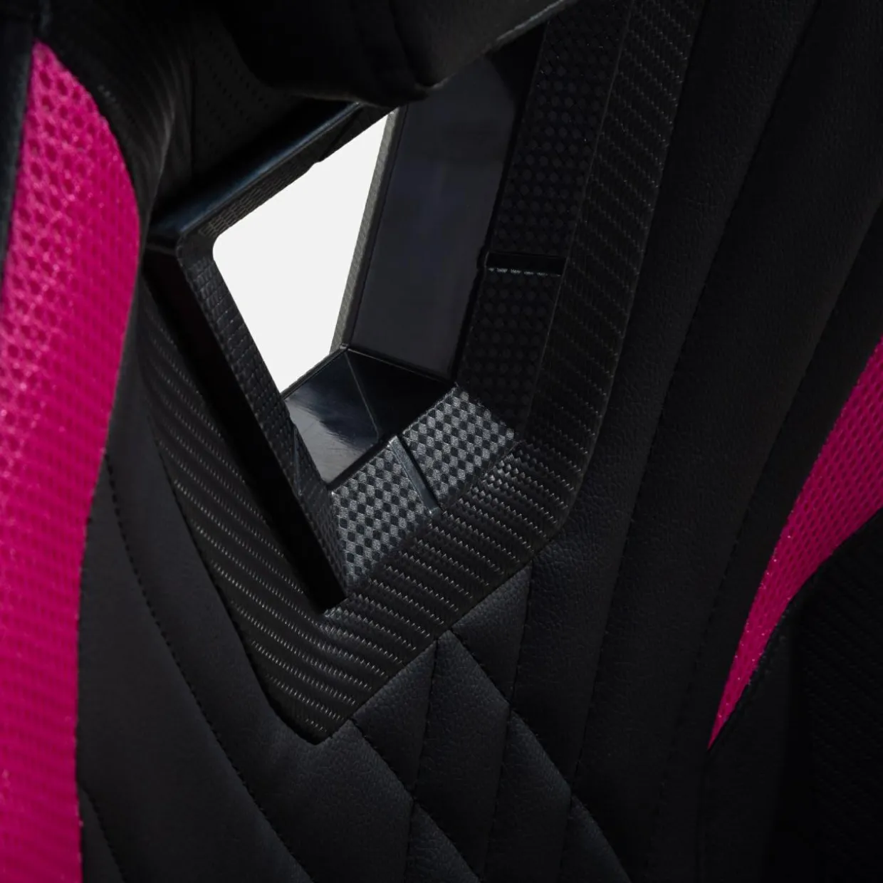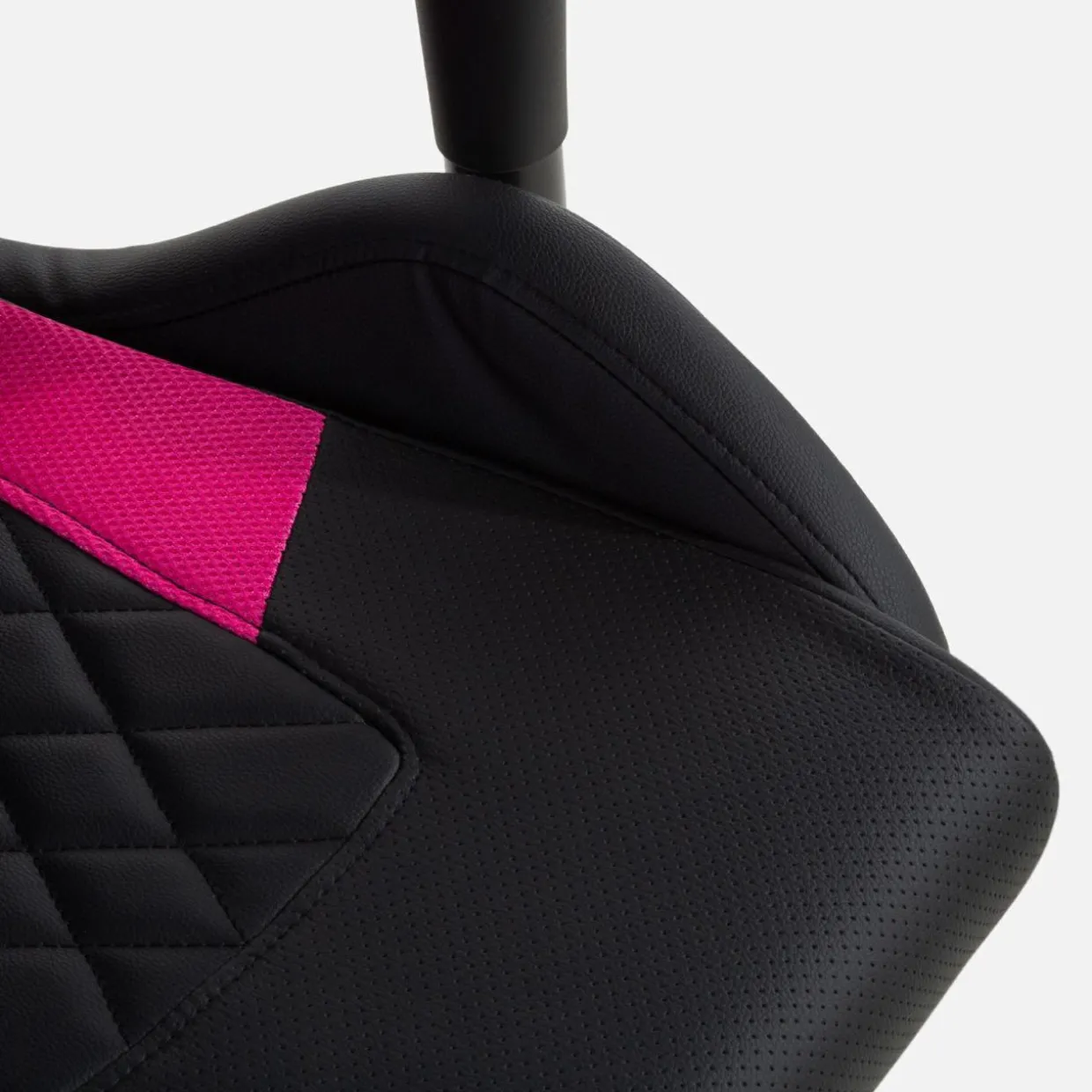 - Obicie z ekoskóry w czarnym kolorze z różowymi wstawkami świetnie dopełni aranżację strefy gamingowej.