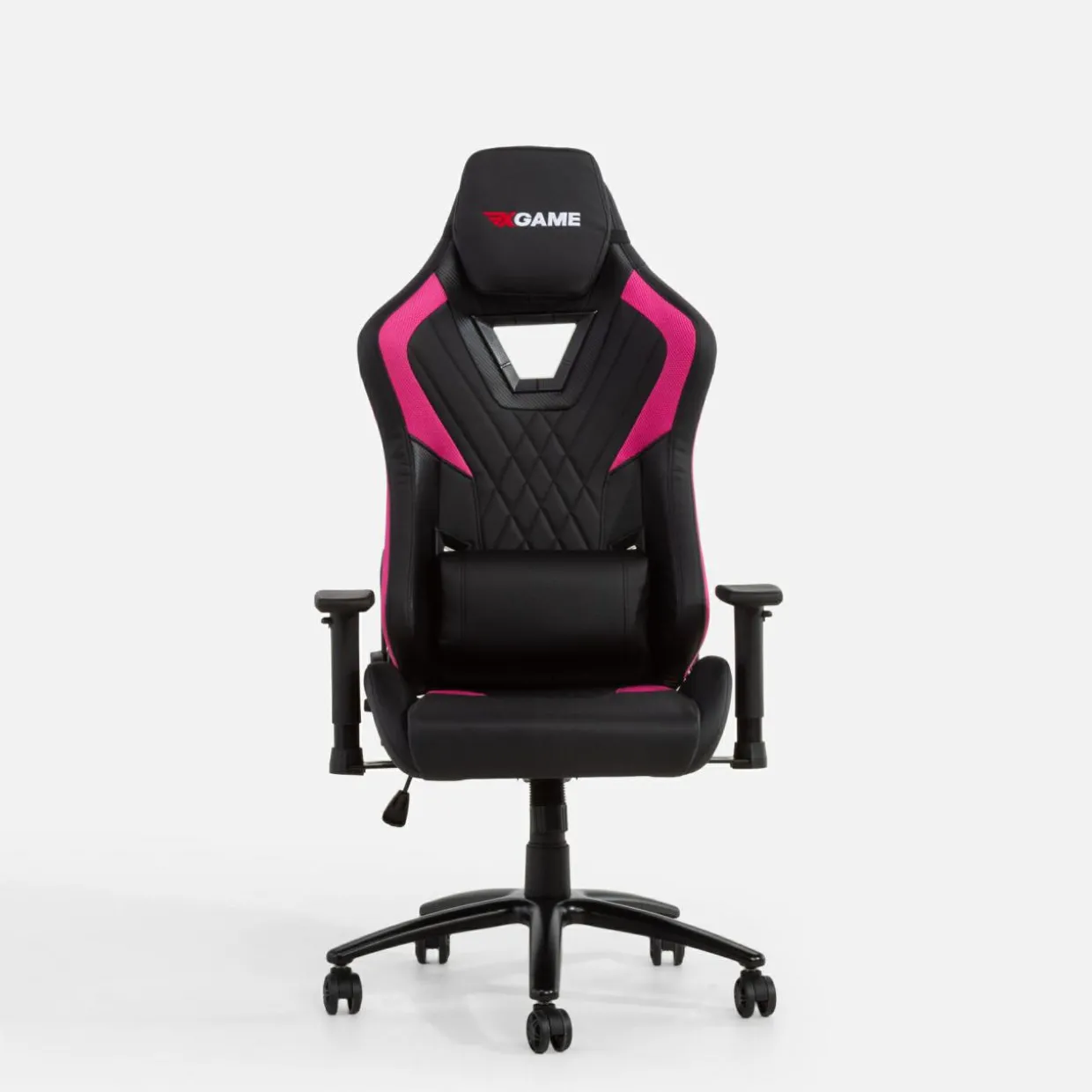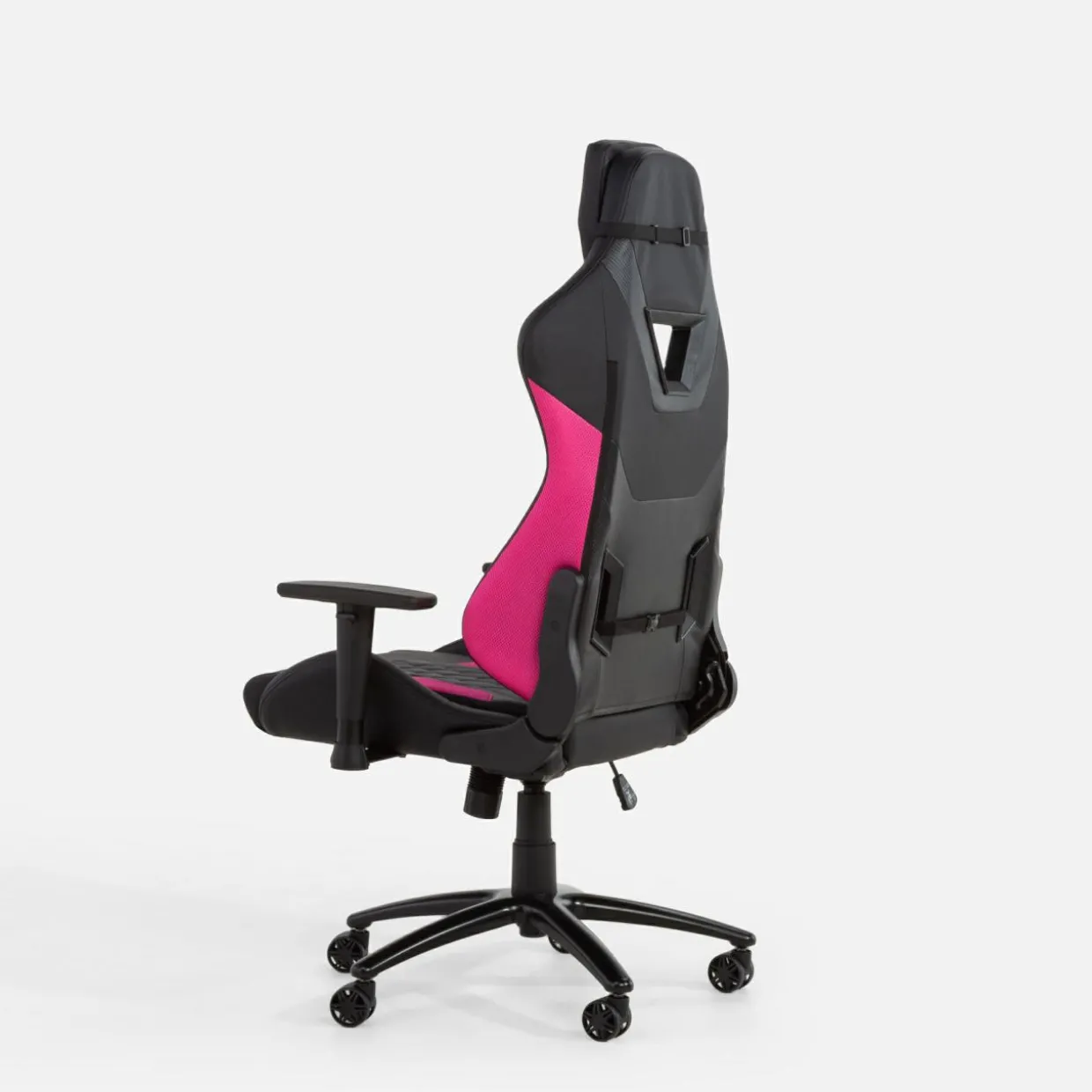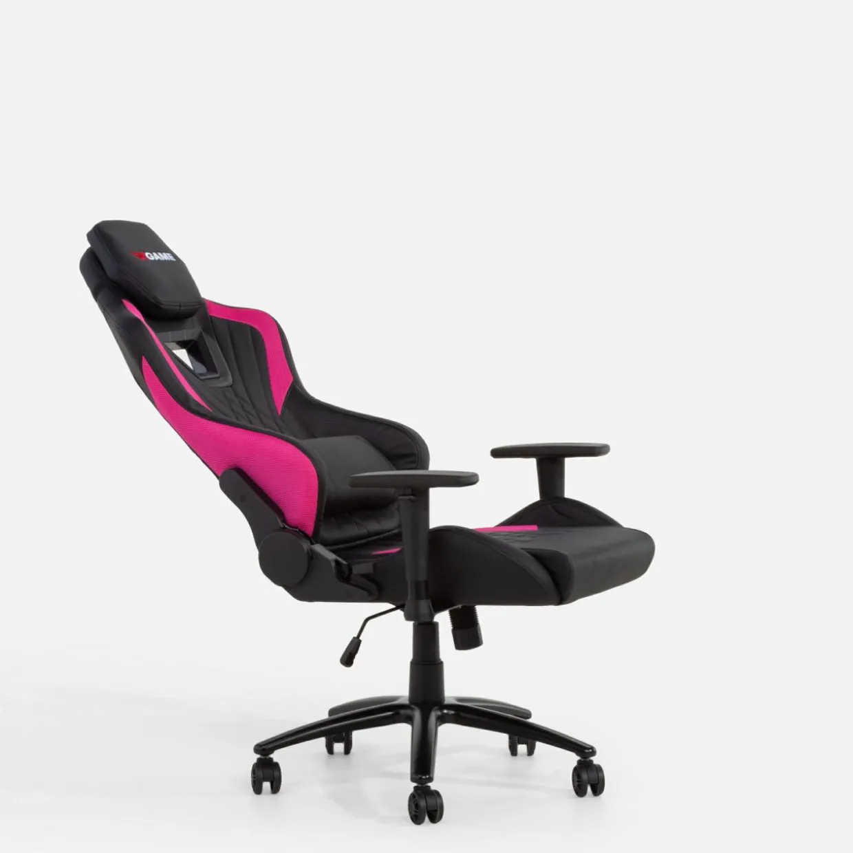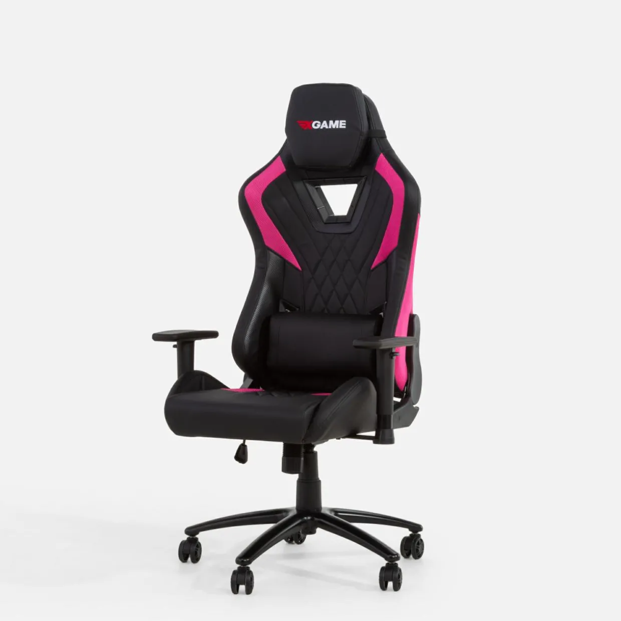 - Obicie z ekoskóry w czarnym kolorze z różowymi wstawkami świetnie dopełni aranżację strefy gamingowej.