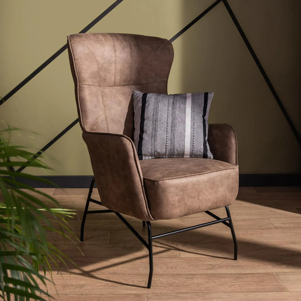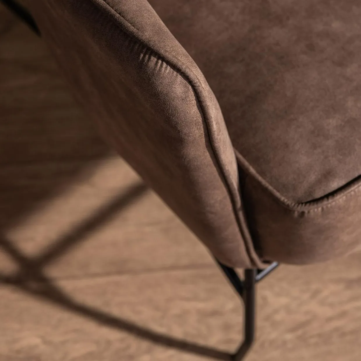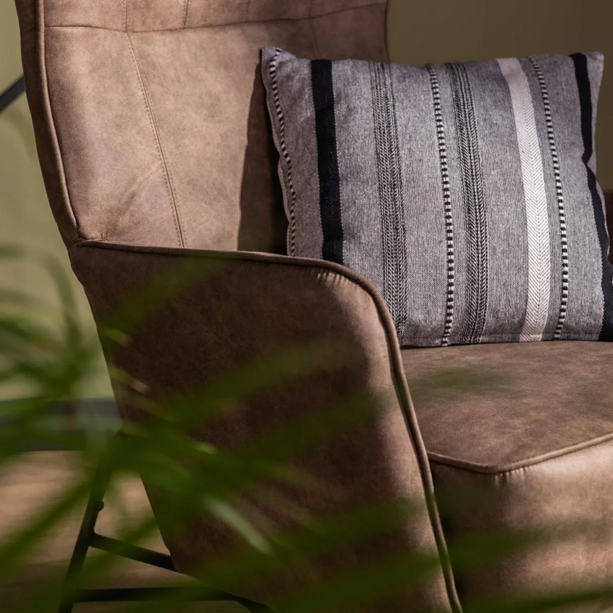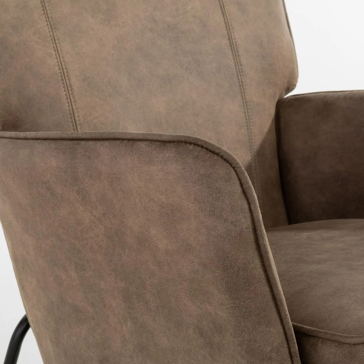 Lubisz surowy wystrój wnętrz? Fotel MODDA zwróci Twoją uwagę ciekawą tkanina imitującą skórę, która podkreśli industrialny charakter salonu.