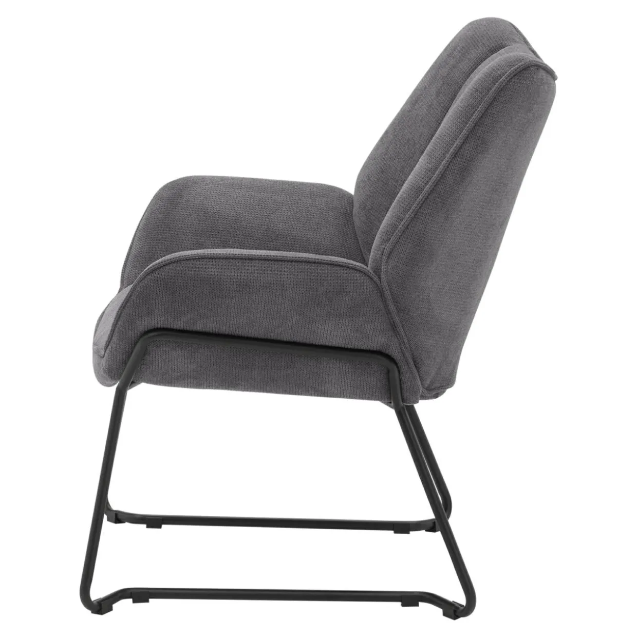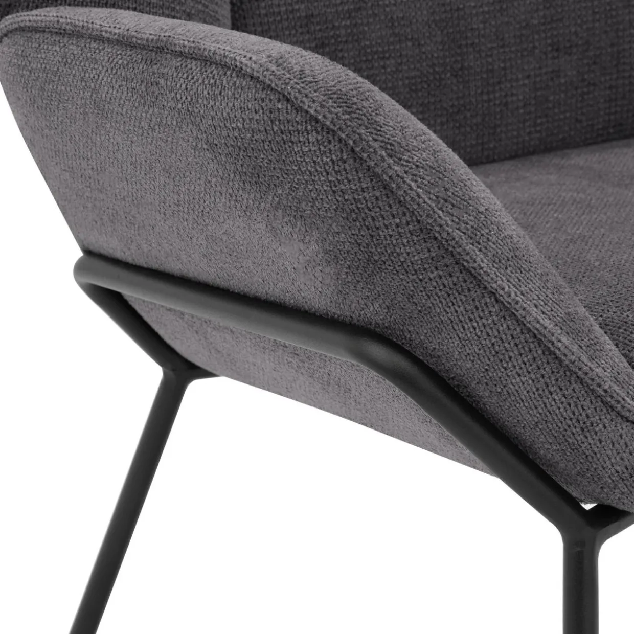Strukturalna tkanina i czarne, metalowe płozy to ciekawy akcent, nawiązujący do stylu retro. Fotel świetnie zaprezentuje się także w minimalistycznych i industrialnych aranżacjach.