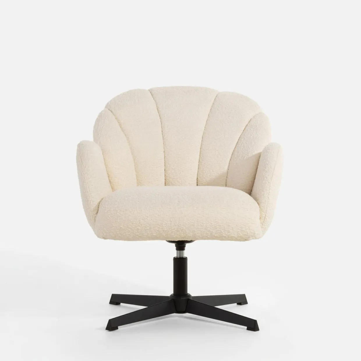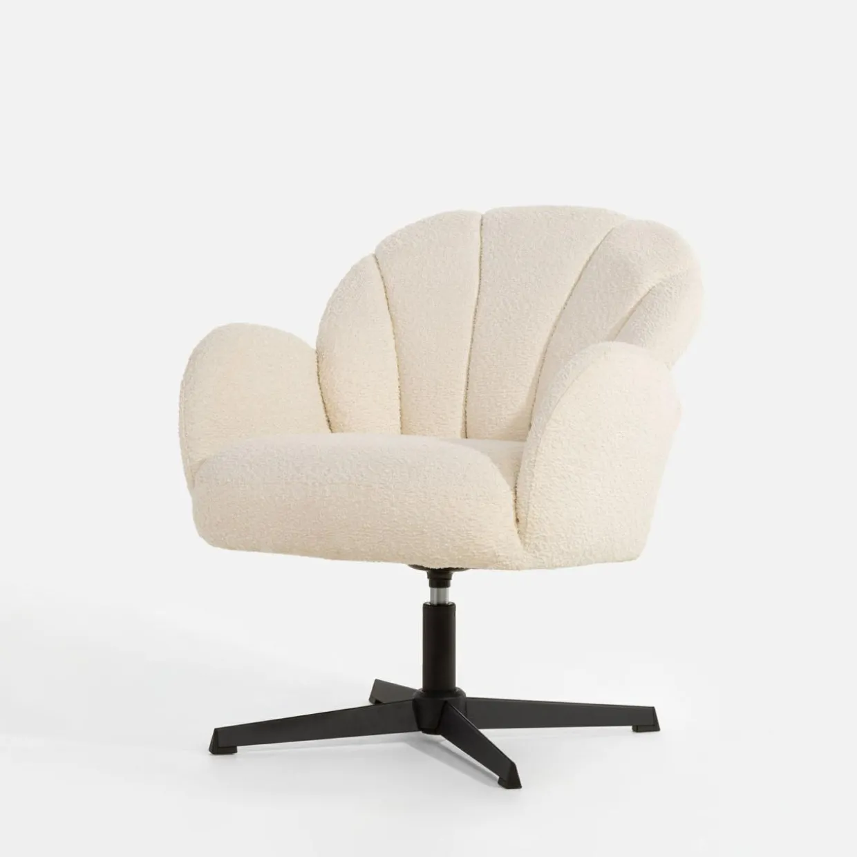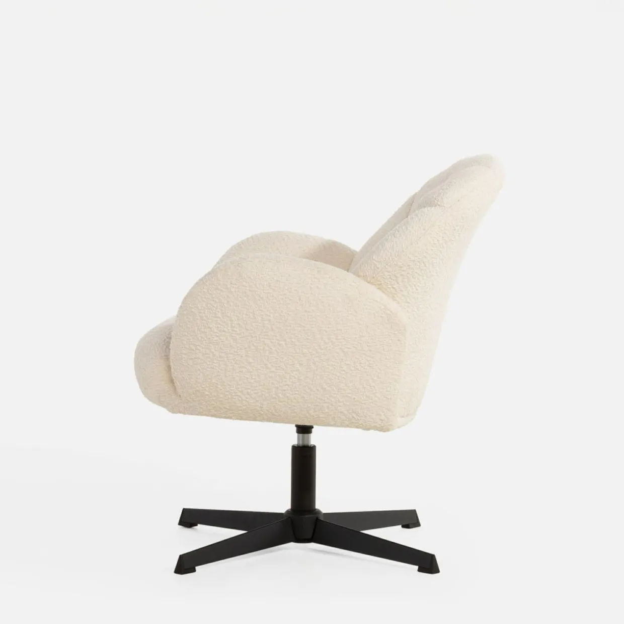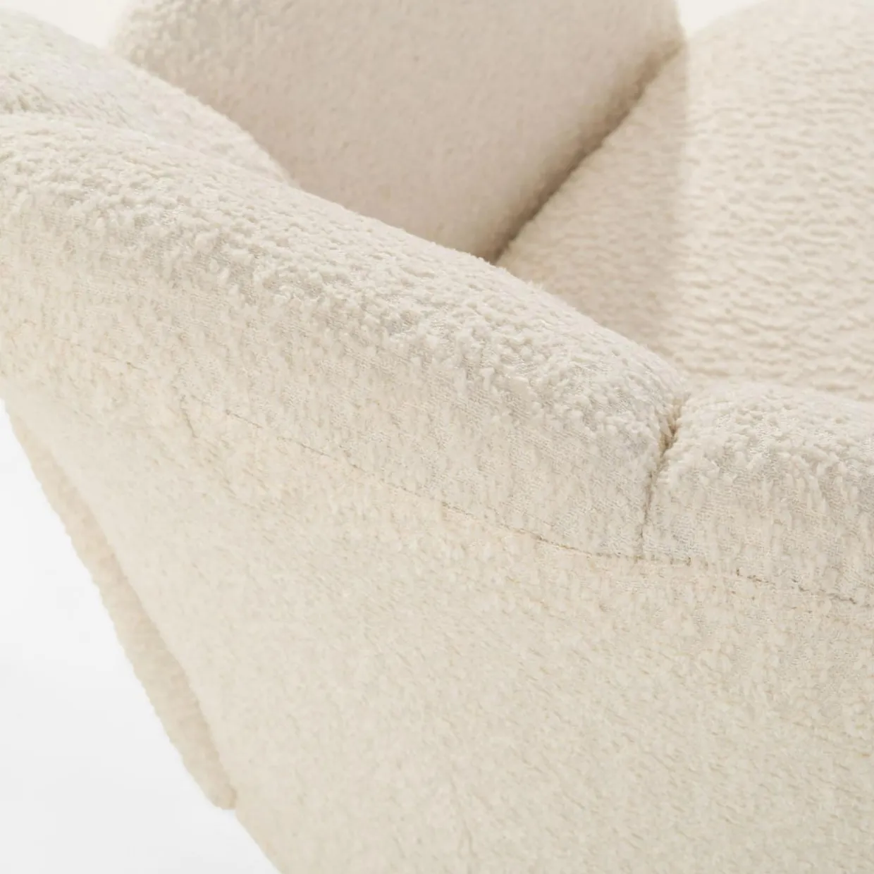 Obrotowa podstawa i miękka tkanina boucle sprawi, że fotel LISKON nie tylko zapewni Ci wygodę, ale też wpisze się w modernistyczny salon.