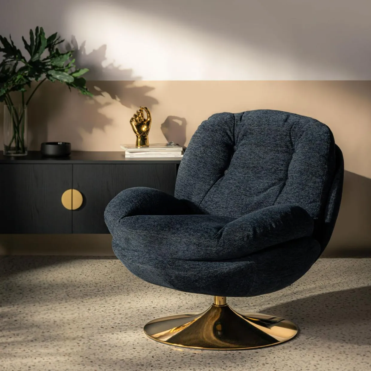 - Połączenie granatu i złotej nóżki dopełni wystrój eleganckiego wnętrza.