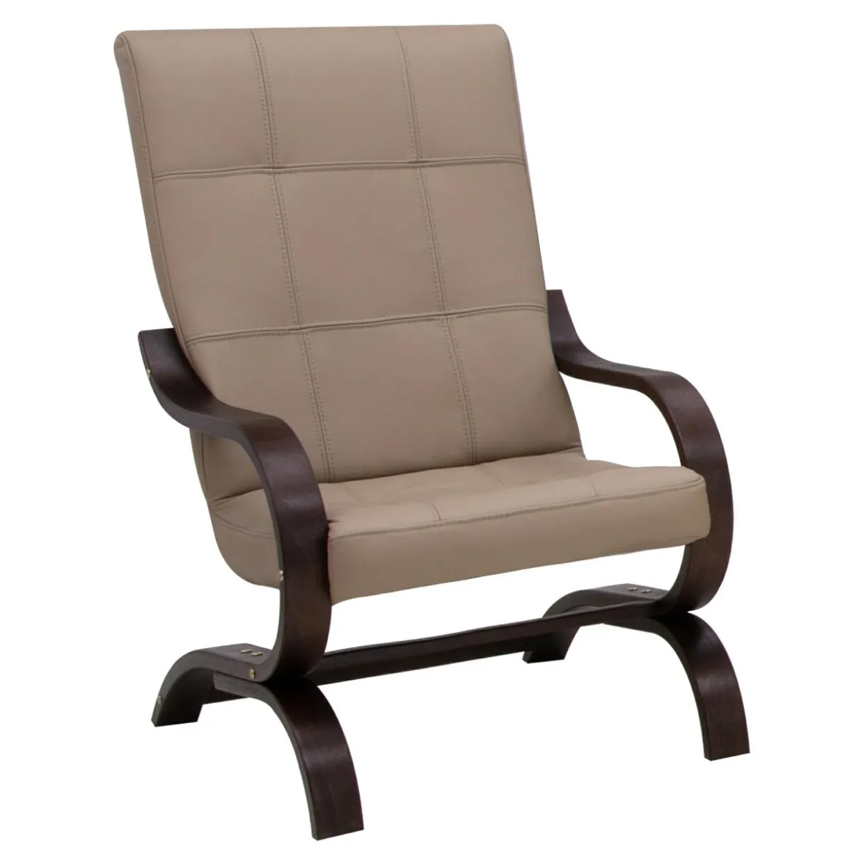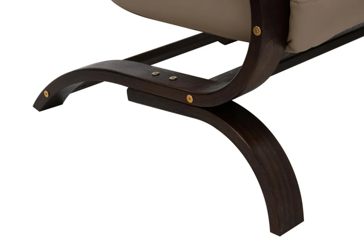 Fotel ERYK jest obity naturalną skórą w beżowym kolorze.