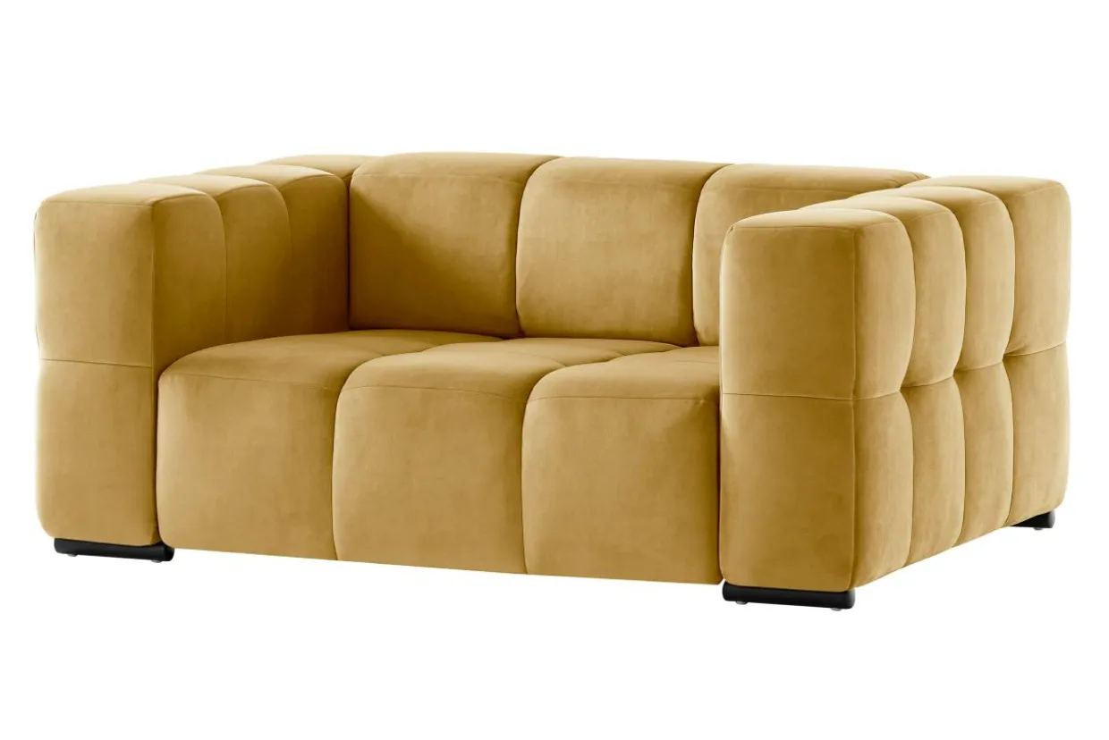Fotel LUCY obity jest welurową tkaniną JOLIE o właściwościach hydrofobowych. Złoty kolor w połączeniu z rozmiarem mebla stworzy prawdziwe słońce w układzie Twojego salonu.