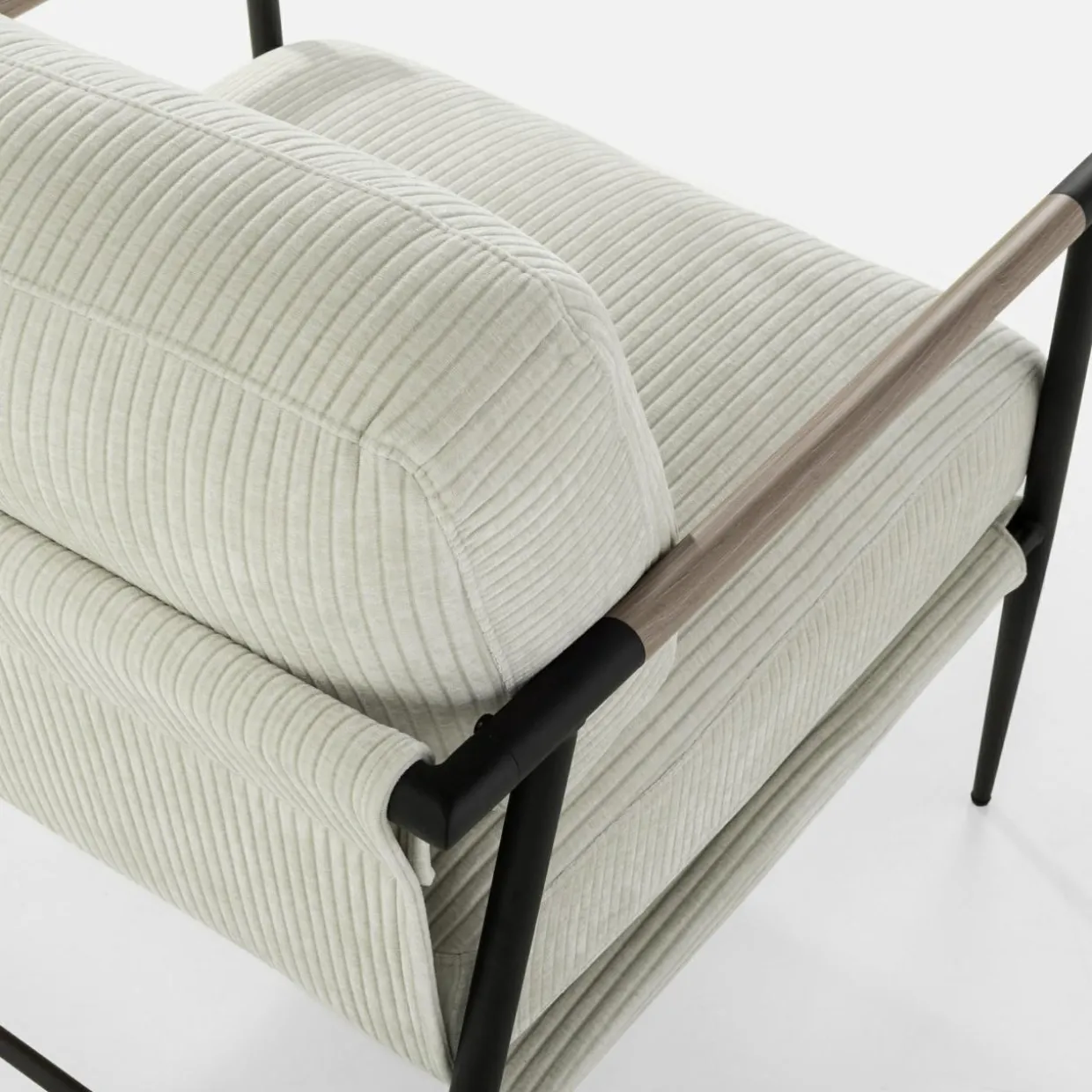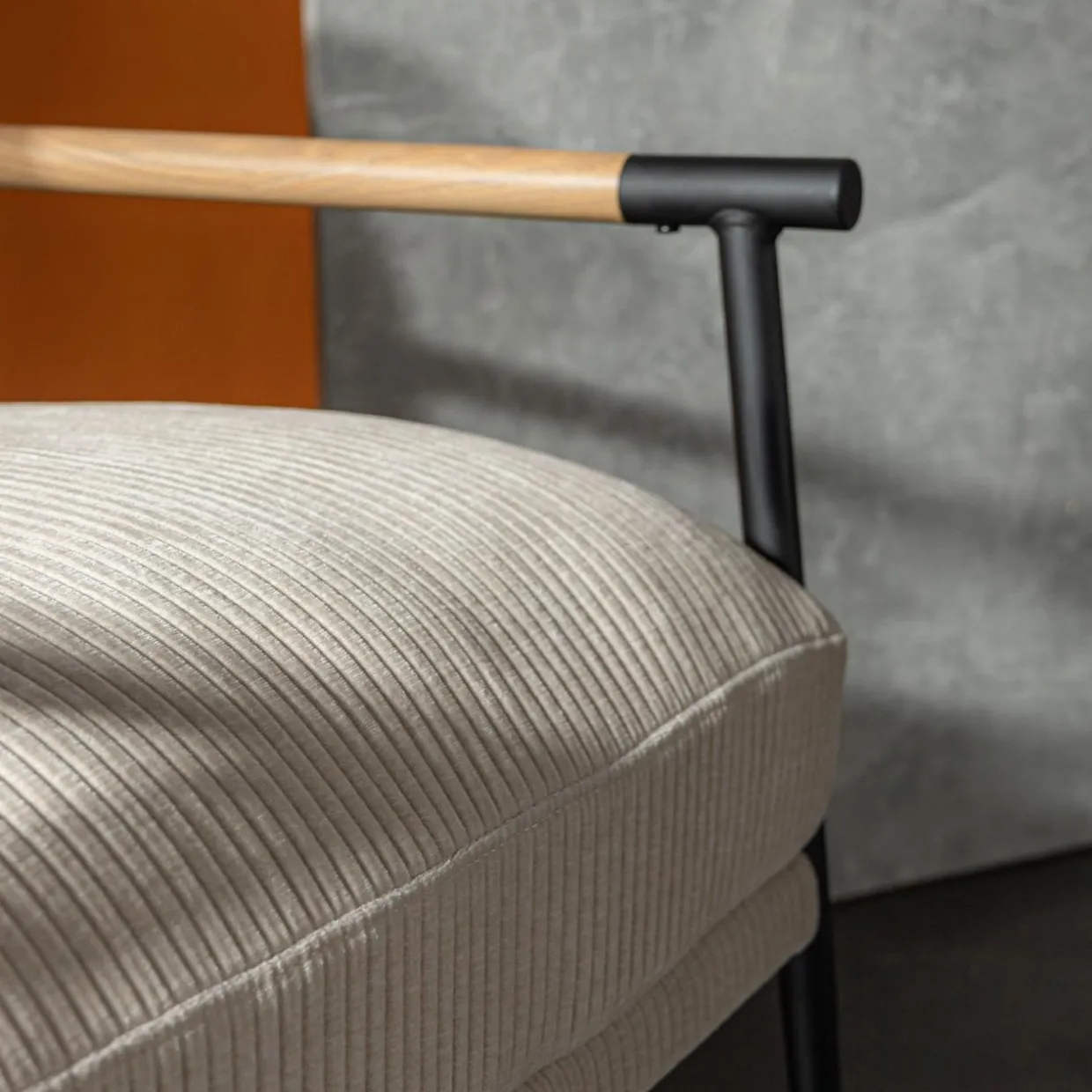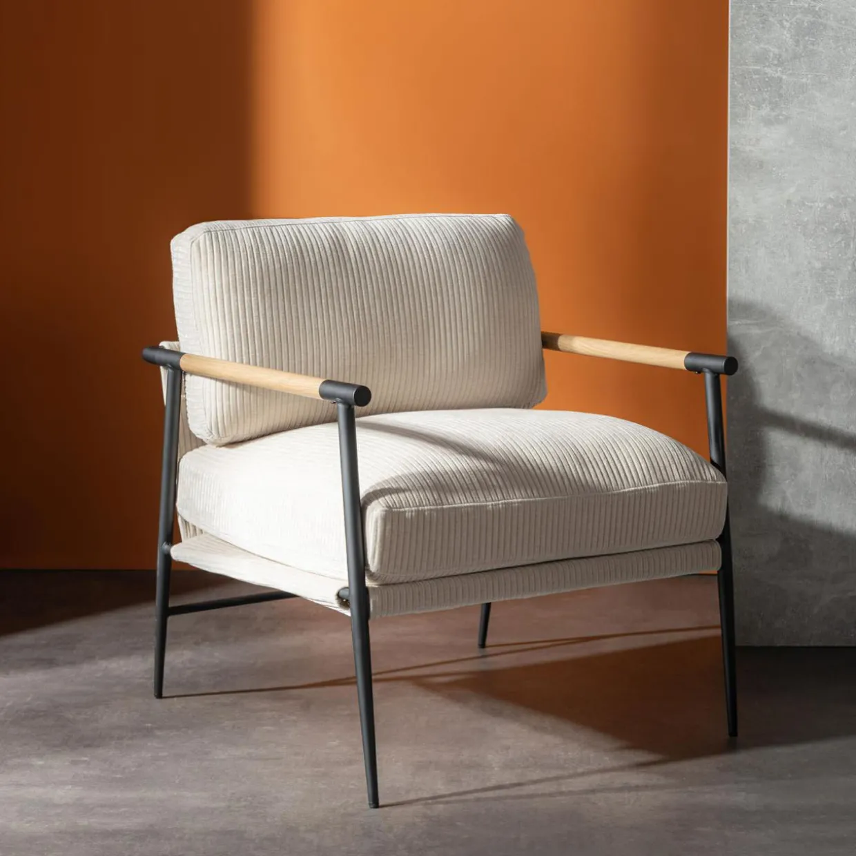 Rozsiądź się na miękkich poduszkach i rozkoszuj się poranną kawą. Fotel DRITRE pokryto kremowym sztruksem – ten ciekawy akcent nada przytulnego charakteru Twojemu wnętrzu.
