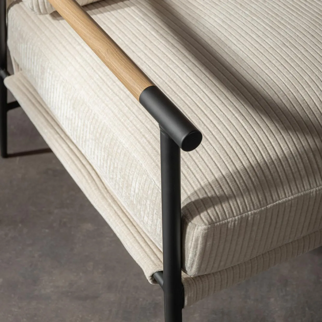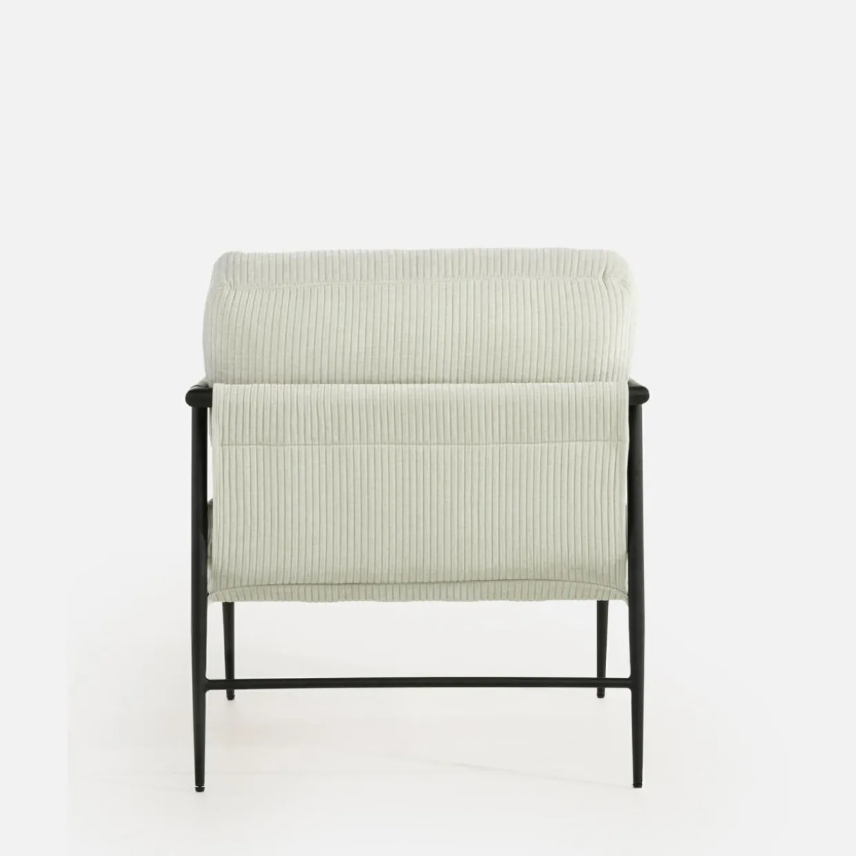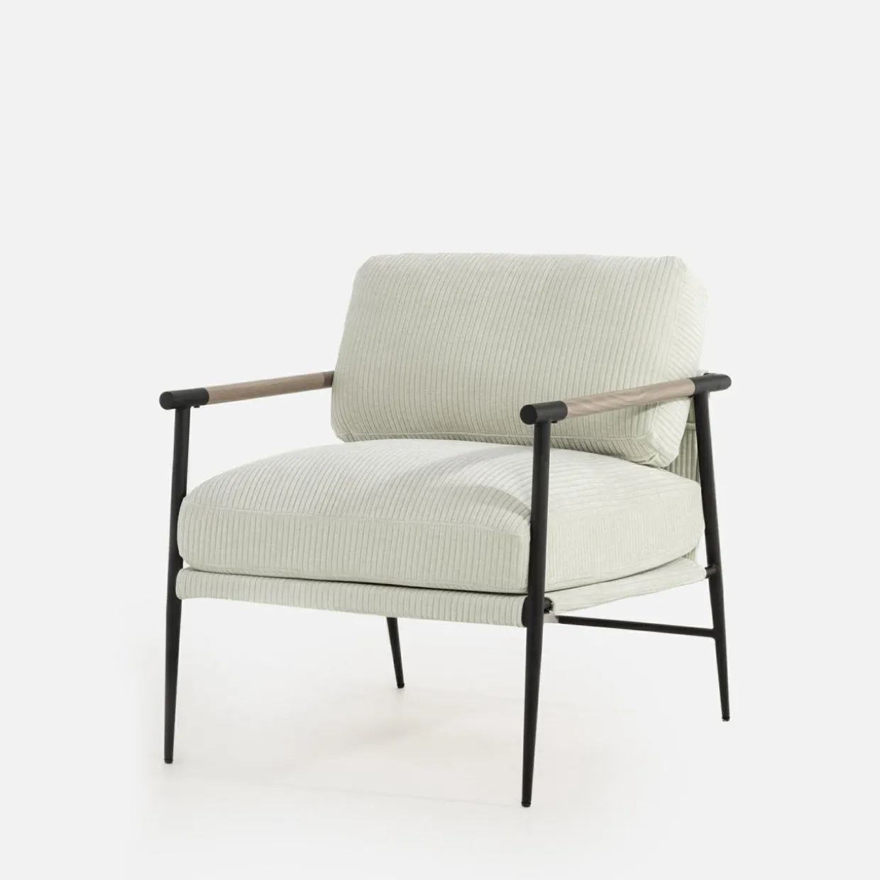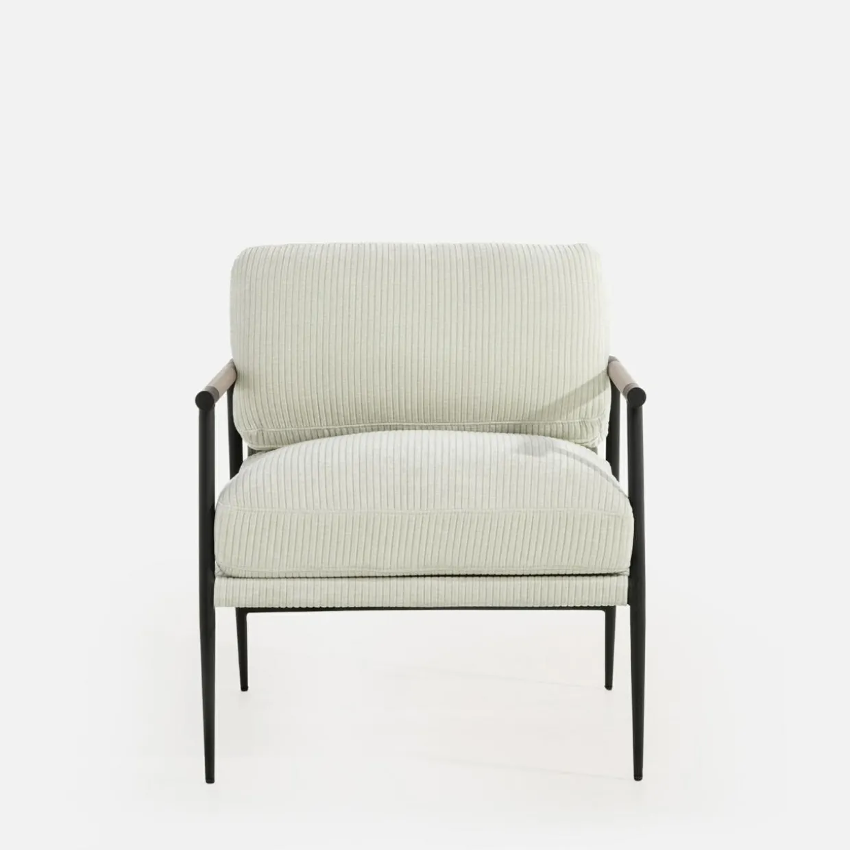 Rozsiądź się na miękkich poduszkach i rozkoszuj się poranną kawą. Fotel DRITRE pokryto kremowym sztruksem – ten ciekawy akcent nada przytulnego charakteru Twojemu wnętrzu.